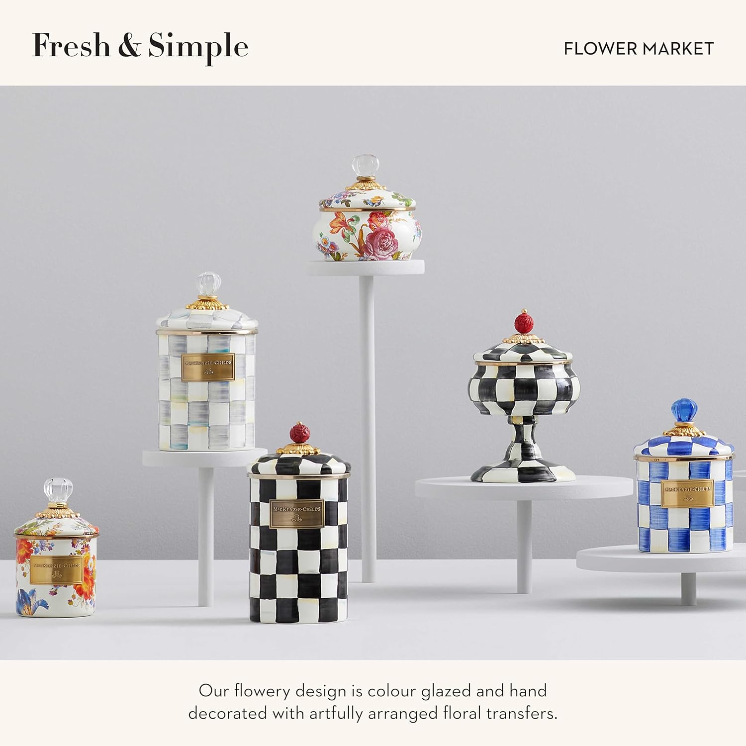 - HOME-DECOR ACCESSORIES: At MacKenzie-Childs, we believe that everyday items can be made extraordinary. From the kitchen counter to the pantry, you can enjoy the magic of MacKenzie-Childs anywhere. We offer enamel storage containers, storage jars, and more.