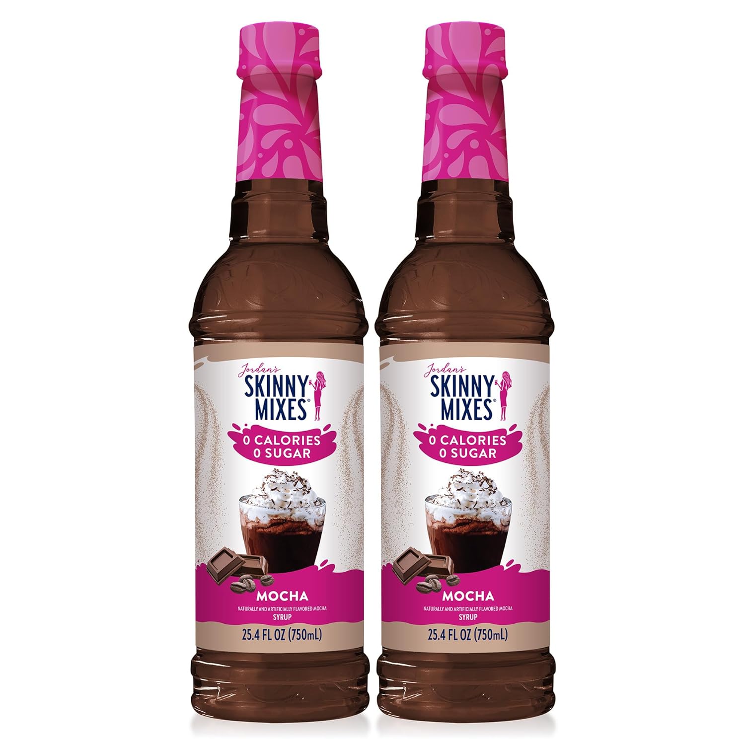 Jordan's Skinny Syrups Sugar Free Coffee Syrup, Mocha Flavor Drink Mix, Zero Calorie Flavoring for Chai Latte, Protein Shake, Food & More, Gluten Free, Keto Friendly, 25.4 Fl Oz, 2 Pack