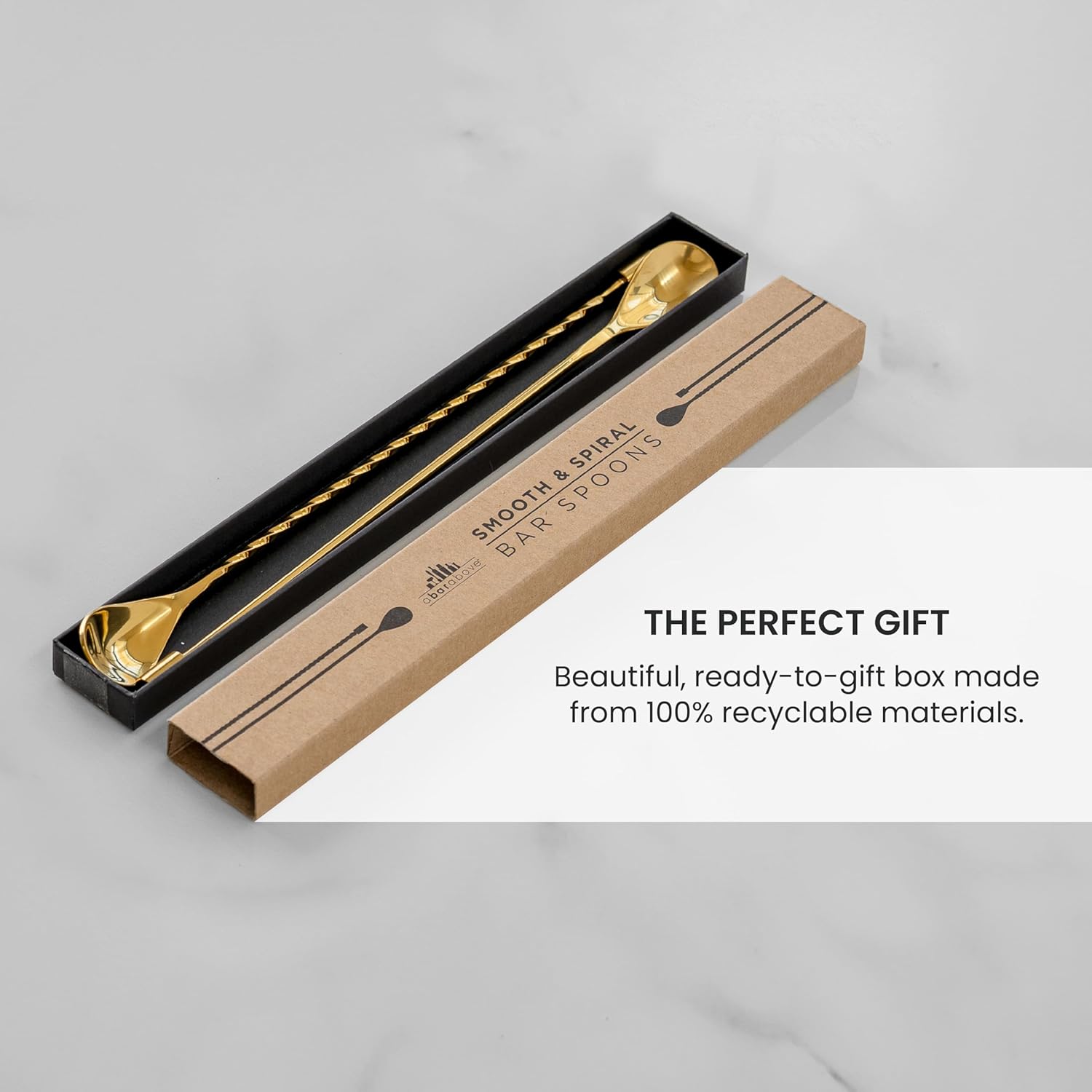 - STAINLESS STEEL STIRRERS FOR PRECISION MIXING: Designed by a career bartender, this 12-inch drink spoon set includes one spiral and one smooth handle for versatile stirring. Made for speed, accuracy, and balance, the ergonomic shape feels natural in the hand, making this the go-to tool for mixing cocktails in a shaker, mixing glass, or pint.
