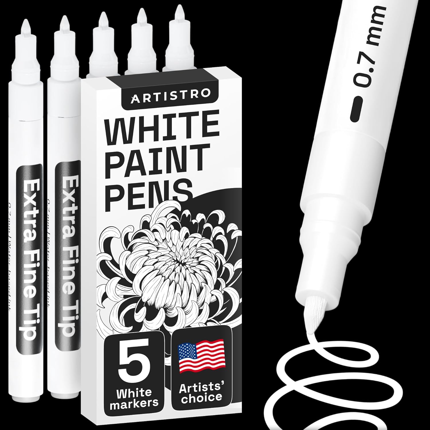 - 0.7 mm Extra Fine Tip: Use our fine tip paint pen to highlight details in your art. The white paint pen fine tip is great for touch ups. Create masterpieces with these white pens for art.