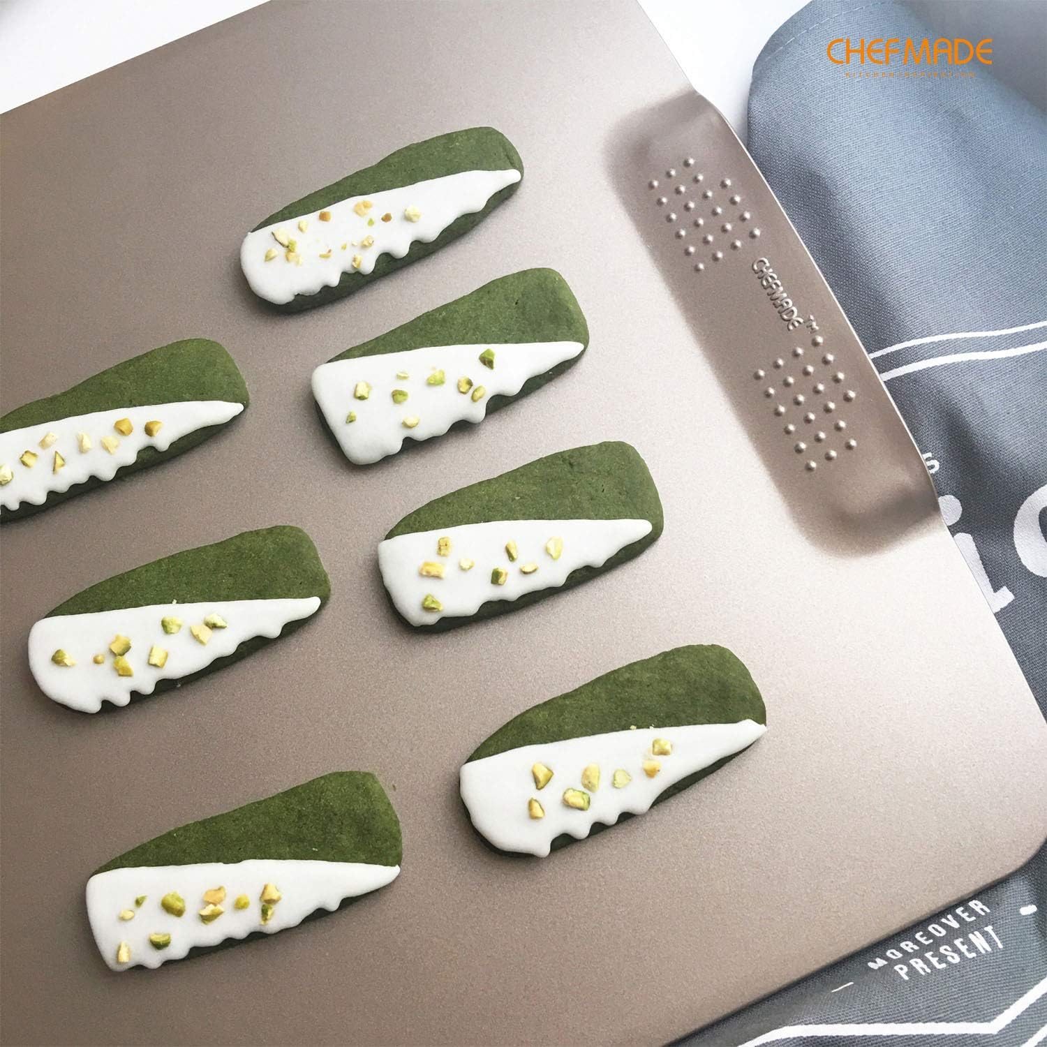 CHEFMADE Cookie Sheet Pan, 12-Inch One-Handed Gripping Non-Stick Rimless Bakeware for Oven Baking 11.4" x 12.8"x 0.6" (Champagne Gold)