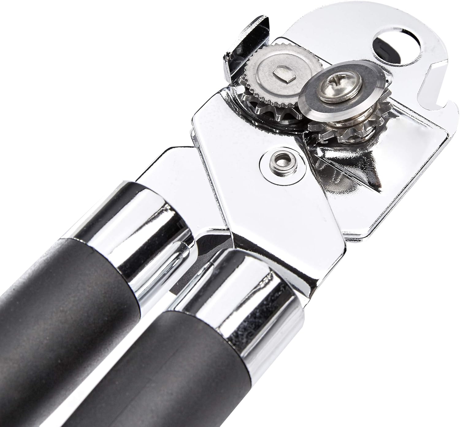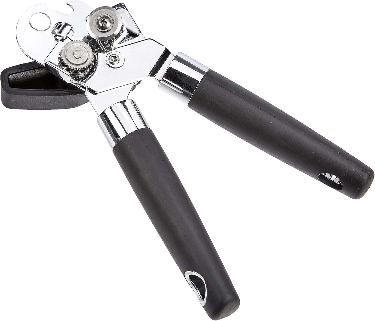 Amazon Basics Multi-function Manual Can Opener and Bottle Opener, 22 cm, Black Soft Grip Dual Handle