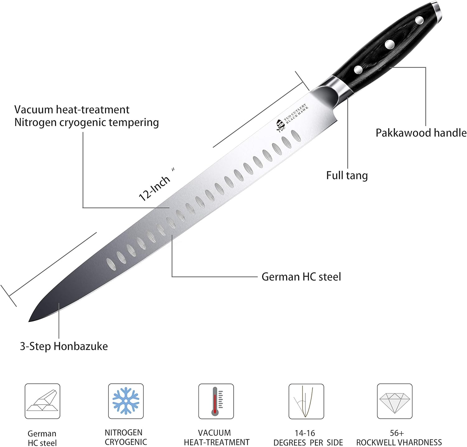 TUO Carving Knife - 12 Inch Brisket Carving Knife for Meat and Turkey - High Carbon German Steel - Pakkawood Handle with Gift Box - BLACK HAWK SERIES