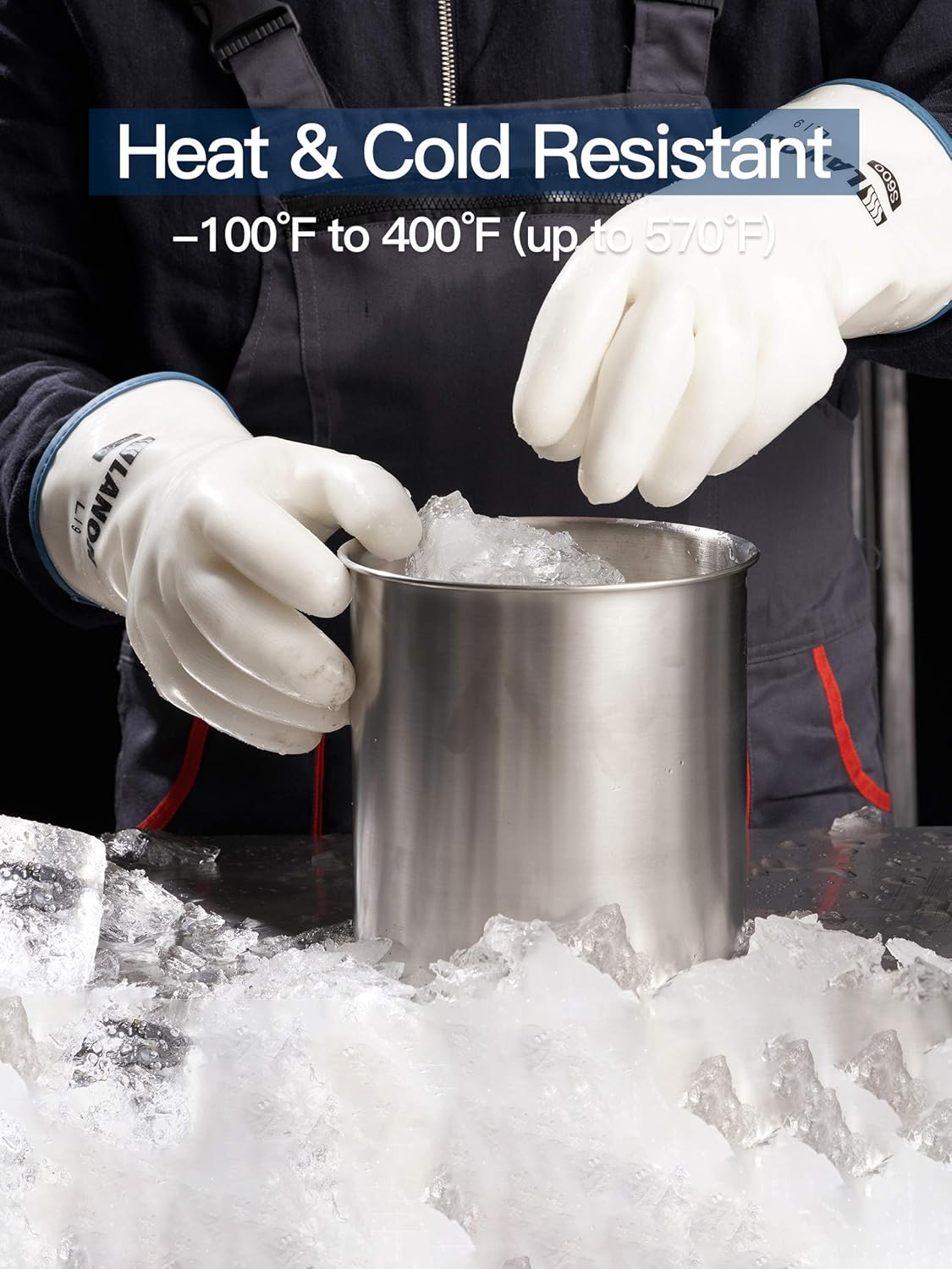 - High Temperature Resistant - wahoo heat resistant gloves are capable of withstanding temperatures ranging from -100°F to 480°F for an extended time and up to 600°F of no more than a few seconds. And the surface of it is waterproof. The gloves are odorless, stain-resistant and impervious to grease, easy to clean, wash with mild dish detergent in hot water.