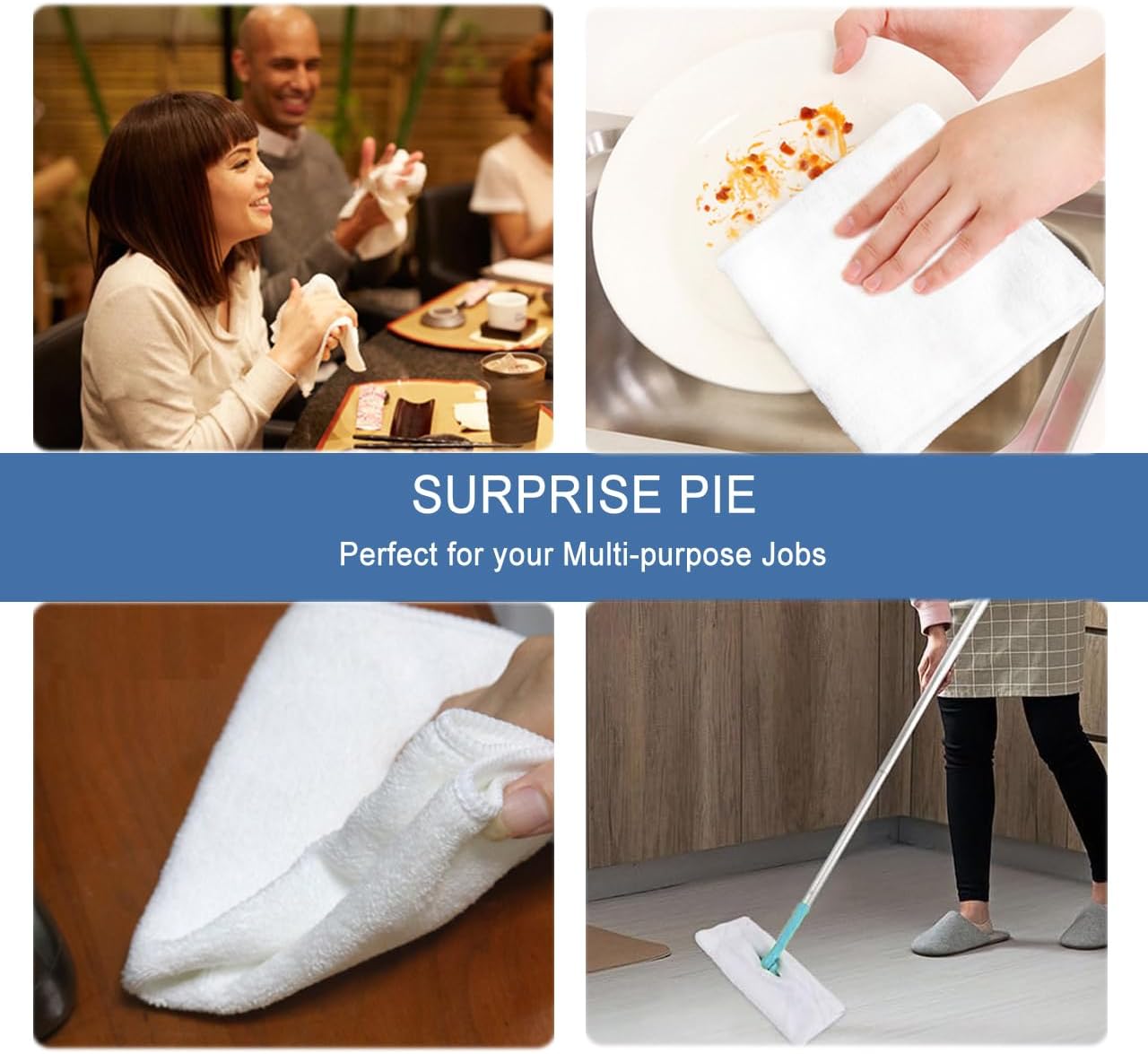 - 【Effective Cleaning Power】These white microfiber cloth have perfect size (12"X 12") to clean your kitchen, windows, or even car and other delicate surfaces.SURPRISE PIE cleaning rags have effective cleaning power,only with just water or cleaner, you can achieve satisfactory cleaning results.