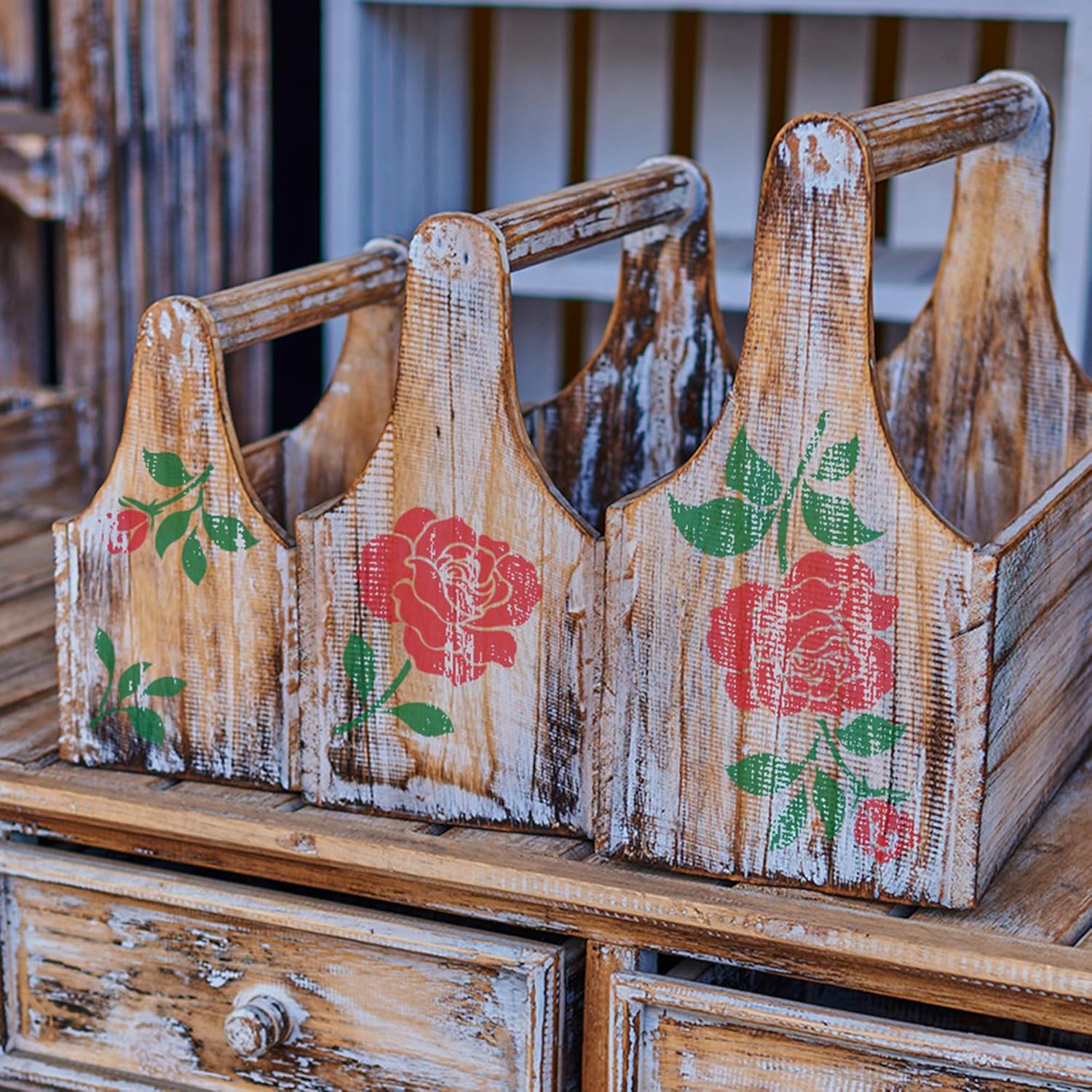 NAKLEO DIY Reusable Plastic Stencil - 15x21cm / 5.8” x 8.3” - Rose Flower Bloom - Art Craft Wall Painting Pattern Template Scrapbooking Decoupage - Fabric Furniture Wood
