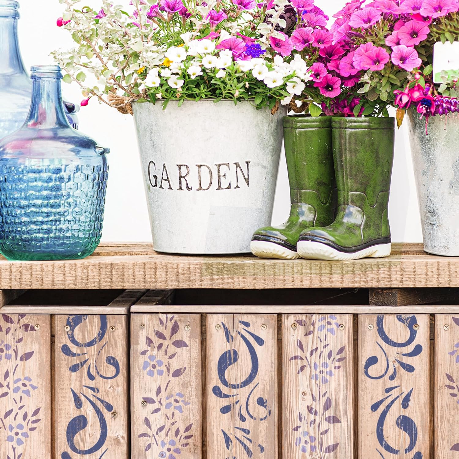 NAKLEO Painting Stencil for Crafts A3 11.8” x 16.5”, Border Flower Plant Pattern, Reusable Plastic DIY & Scrapbooking Drawing Template, Decoupage Art Home Decor, Wall Wood Fabric Furniture