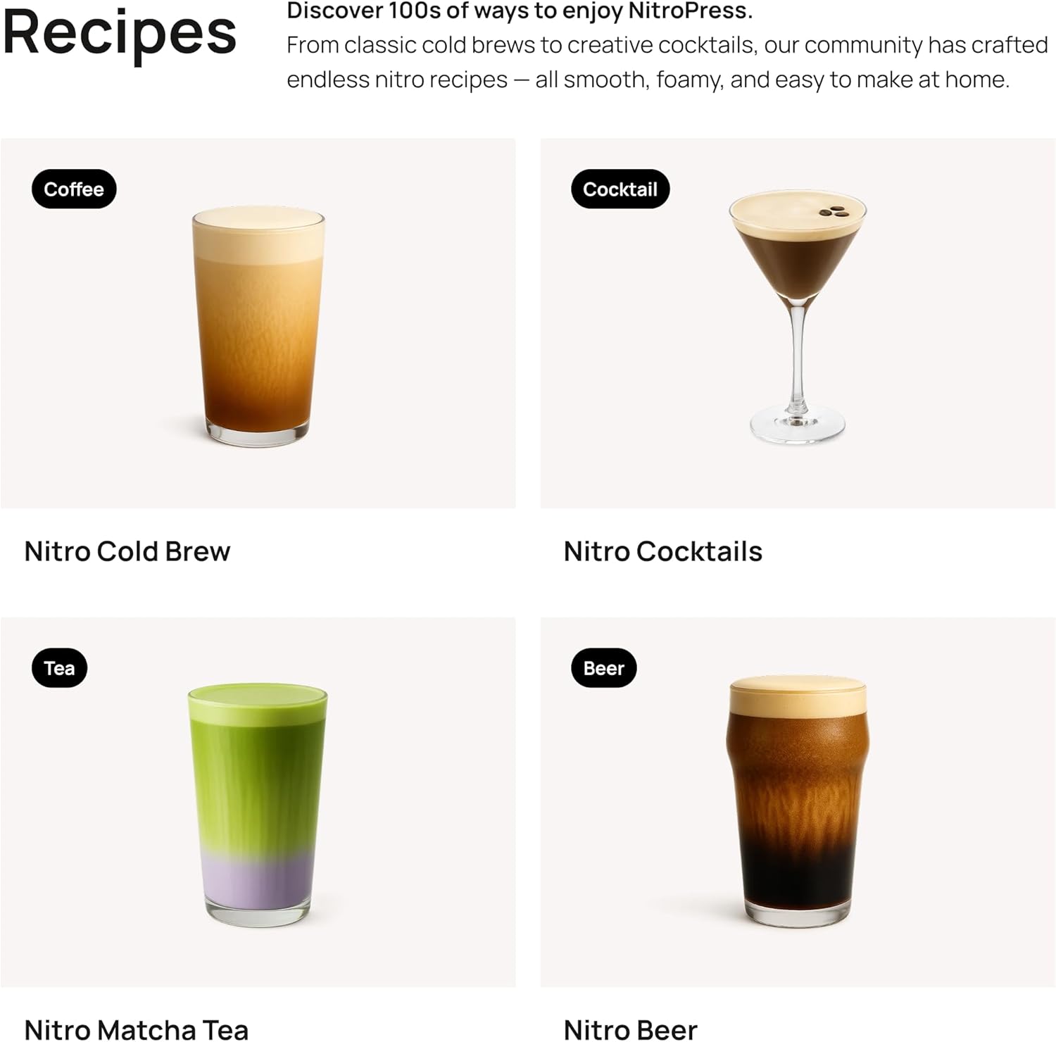 - ✔️ MAKE YOUR OWN NITRO COLD BREW COFFEE AT HOME with premium nitrogen cartridges for nitro coffee. Enjoy your favourite rich and creamy cold brew coffee without leaving your home with our N2 instant charger set.