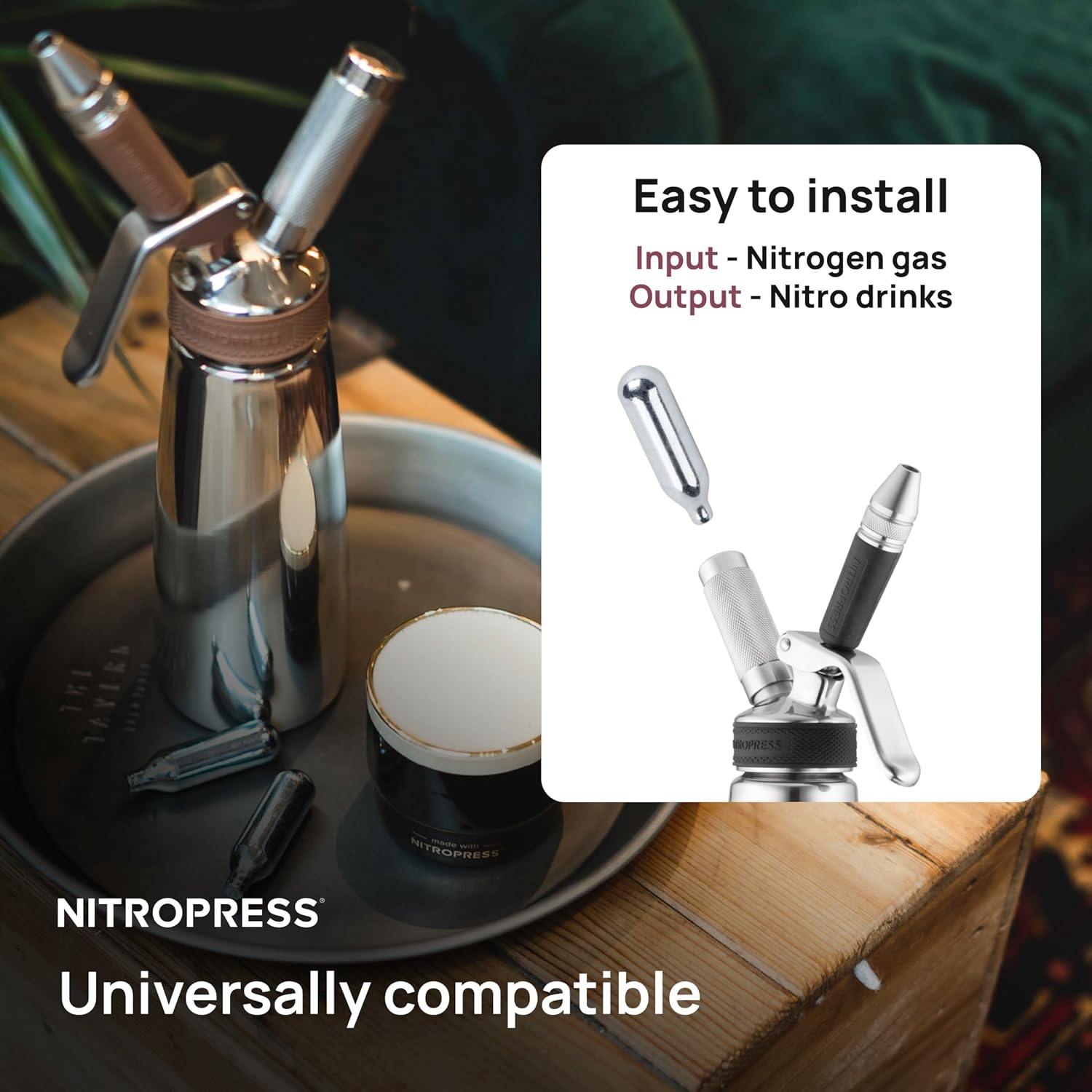 10 PCS NitroPress Nitrogen Coffee Chargers – Pure N2 Cartridges for Nitro Cold Brew Coffee Maker, Cocktails, Tea, and Beer – Use with NitroPress Instant Nitrogen Diffuser System