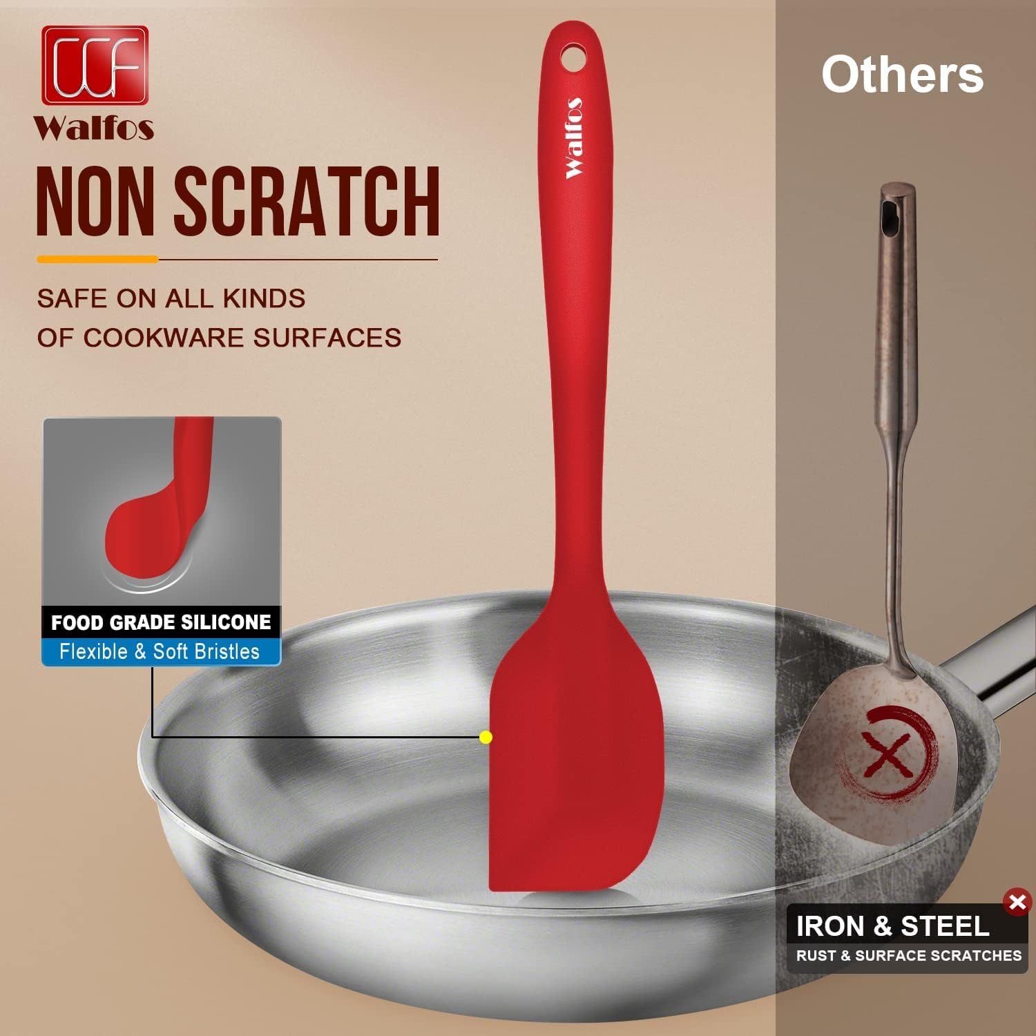 - 【600°F Highly Heat Resistant, BPA Free!】WALFOs spatulas are made of premium food grade silicone,BPA Free, 600°F Heat Resistant,Non-stick surface,Whether cooking,Bake Royal,scraping, decorating or mixing use walfos spatula,which are are safe,good for your health and easy on all of your cookware.