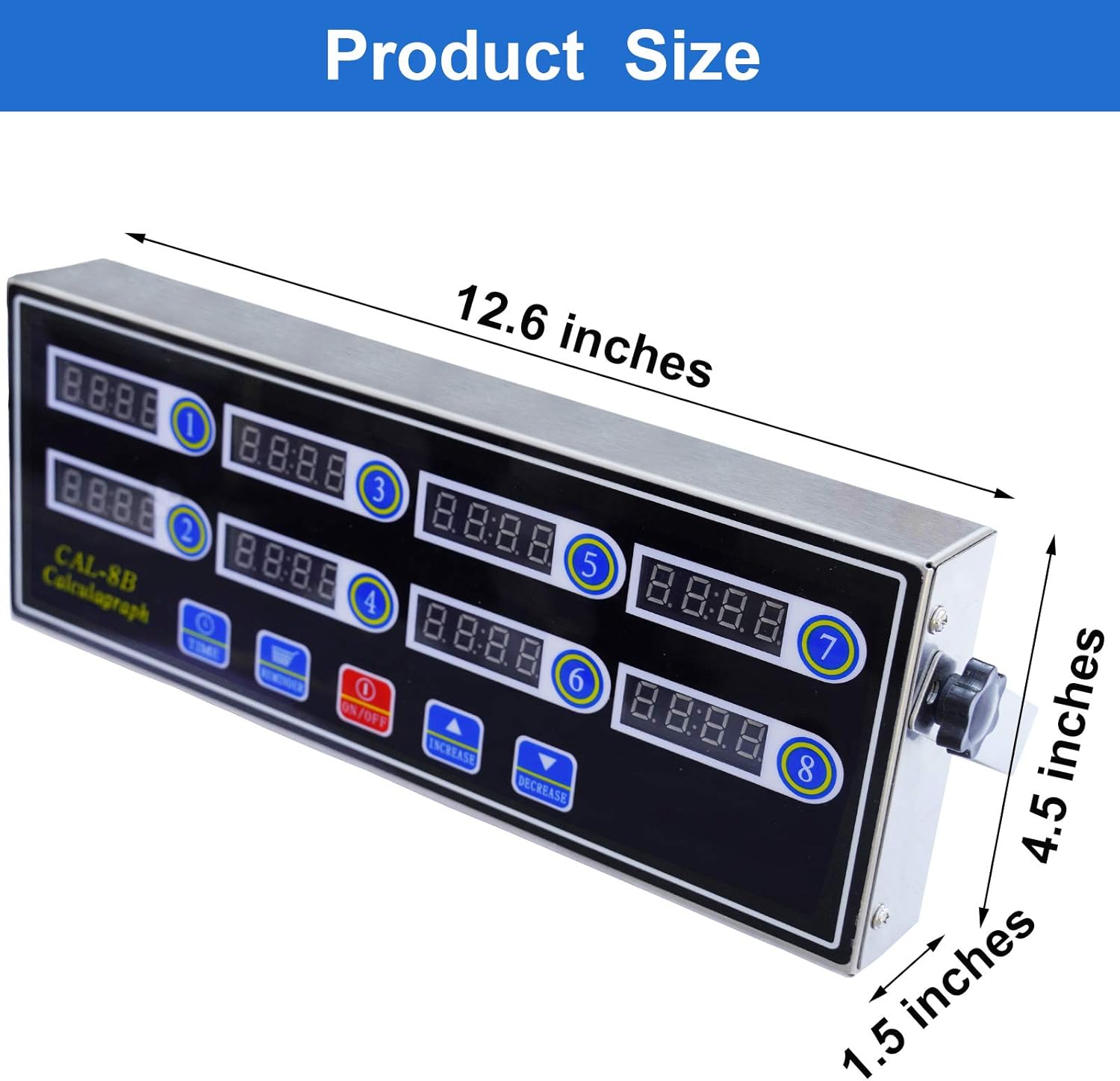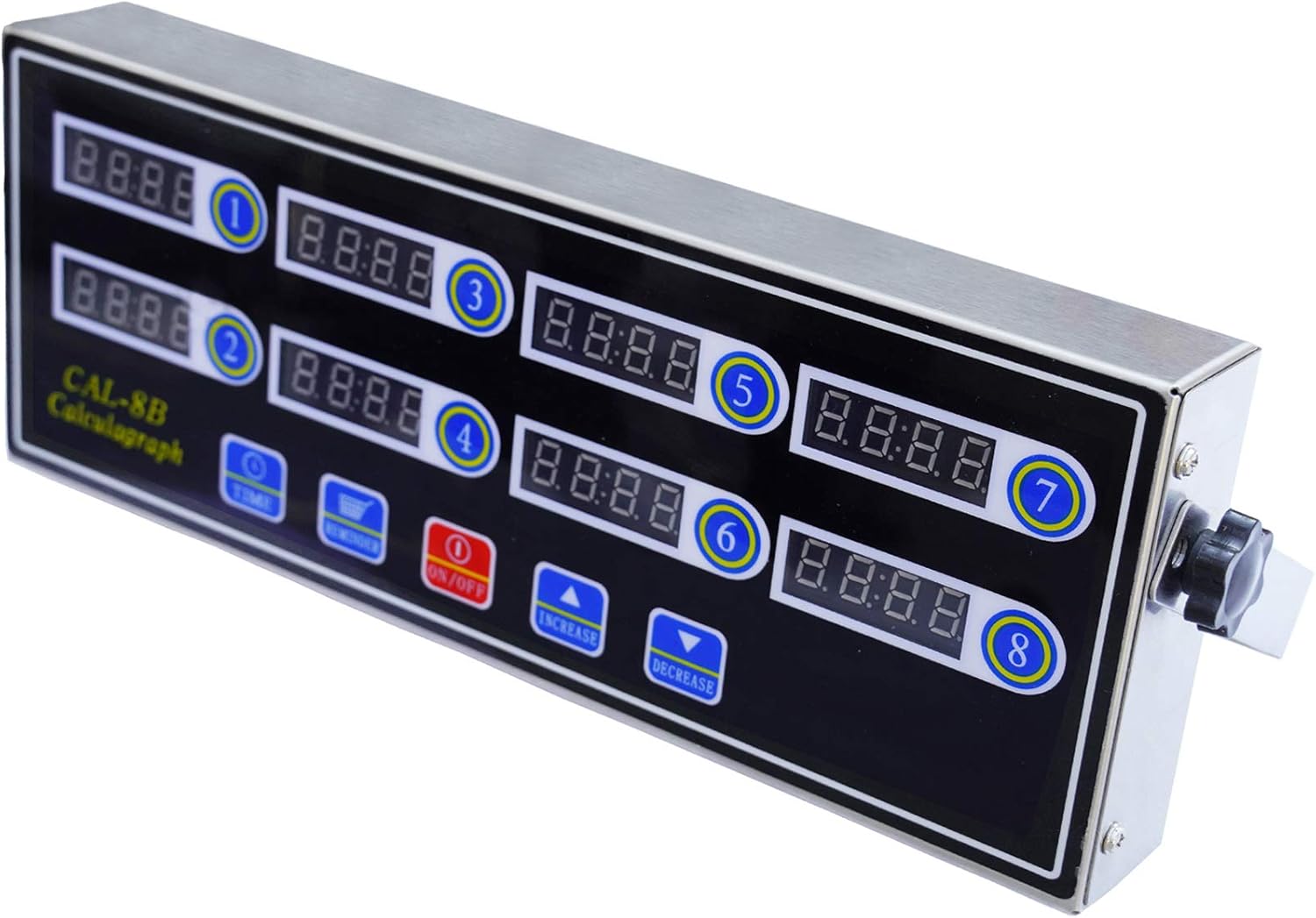 - Construction: Our commercial 8 channels digital kitchen timer is sturdy, with stainless steel housing, comfortable buttons and clear Led time digit. Plug and play