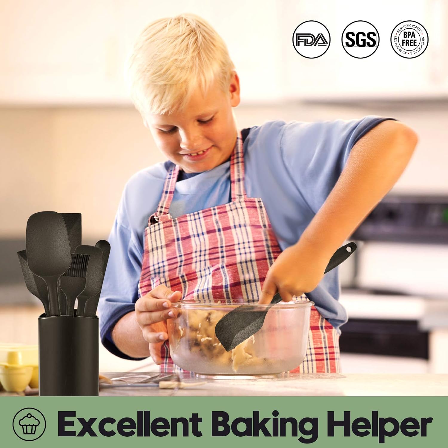 Heat Resistant Silicone Spatulas Set Food Grade Silicone Seamless One Piece Design BPA-Free,Non-Stick,Dishwasher Safe,Cooking and Mixing Set of 6PCS-Black(Black)