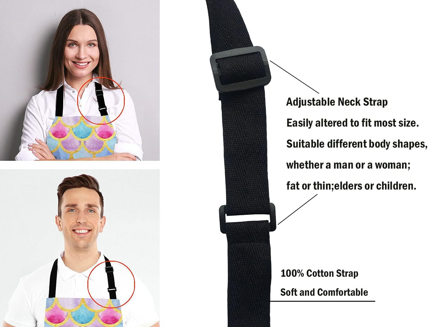 - Adjustable neck strap with black ties,The adjustable Neck strap design, It can be adjusted quickly for people of different heights, making it easier to wear.