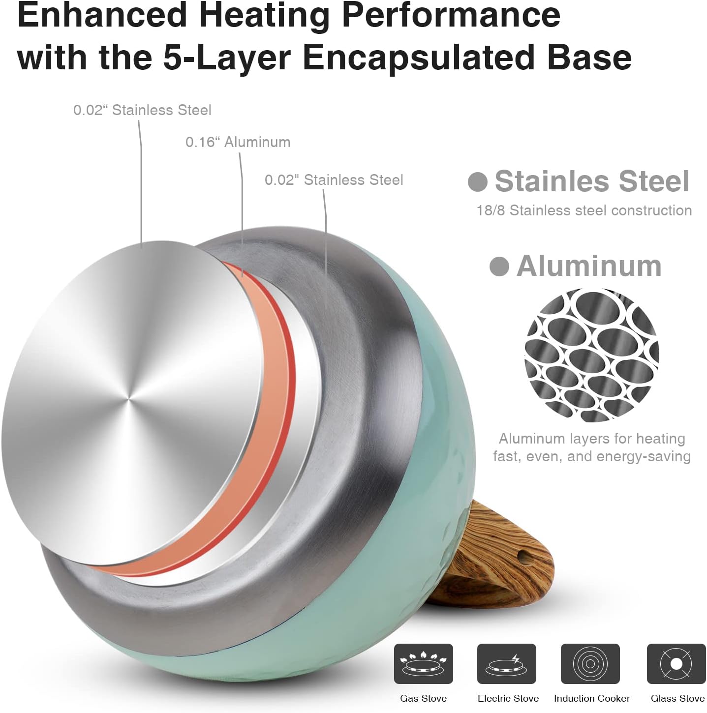 Tea Kettle, Toptier Teapot Whistling Kettle with Wood Pattern Handle Loud Whistle, Food Grade Stainless Steel Tea Pot for Stovetops Induction Diamond Design Water Kettle, 2.7-Quart Light Green