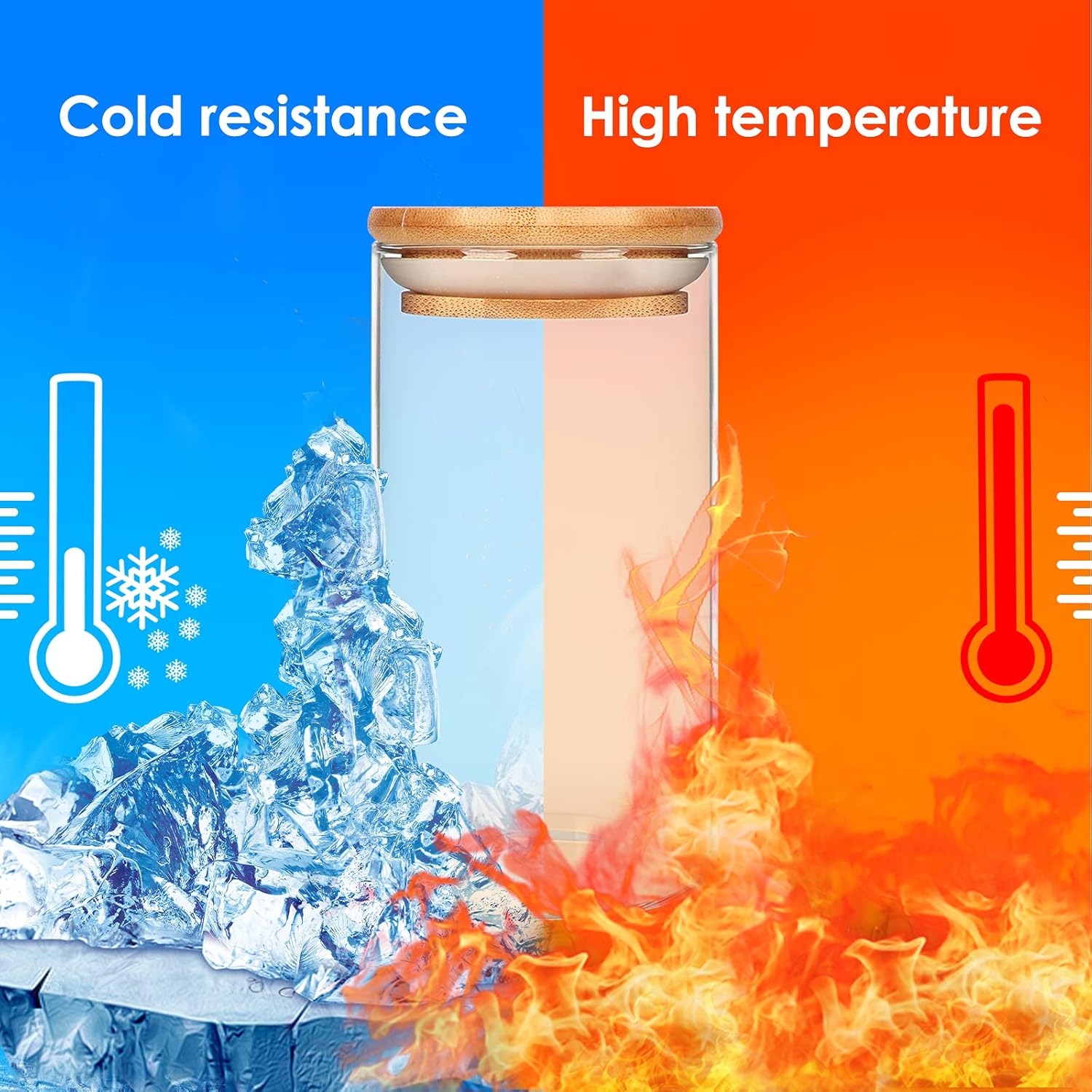 - High Quality: Glass jars made of high-borosilicate glass which features with great stability, higher hardness, heat resistance with better light transmission. Each jar cover comes with a food-grade silicone sealant ring, more effective in preventing fluid flow and the entry of gases and bugs