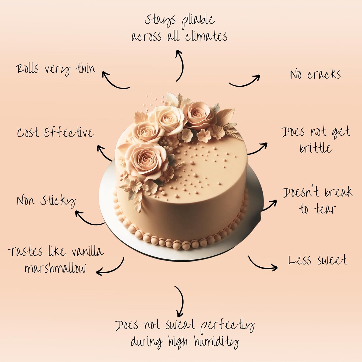 - Smooth, Pliable & Tear-Resistant – Rolls, molds, and covers cakes effortlessly without cracking or sticking.