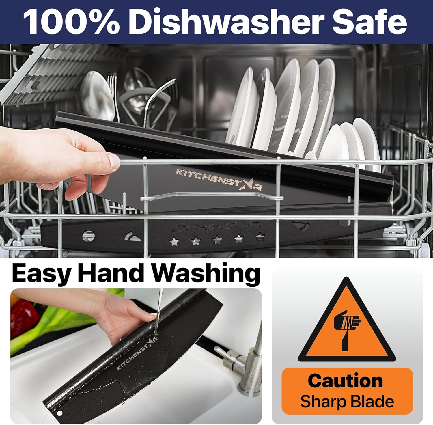 KitchenStar 12-Inch Pizza Cutter Rocker Blade - Sharp Stainless Steel Slicer Knife, Protective Cover, Black Nonstick, Small - Professional Pizza Oven Accessories