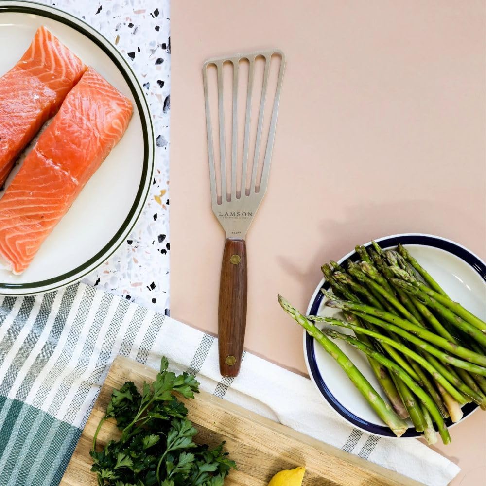 Lamson Vintage 3" x 6" Chef's Slotted Turner, Left-Hand, Walnut Handle
