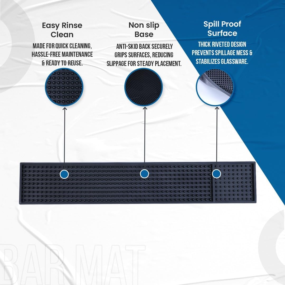 - Looks Good, Lasts Long : Why settle for less? Our flat packed bar mats for bartending mat are made with durable non-toxic rubber that keeps your glasses in place and ready to catch drips or spills
