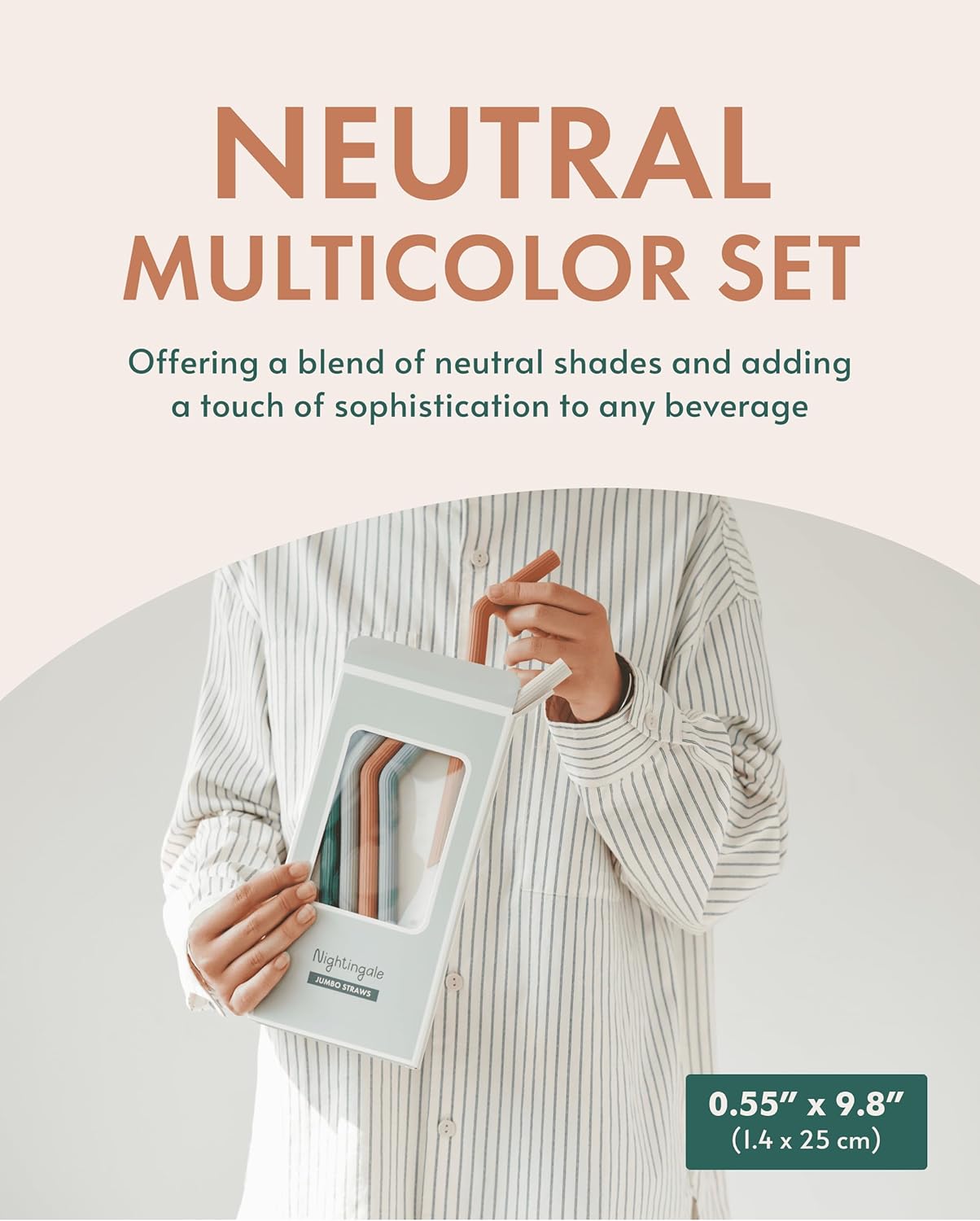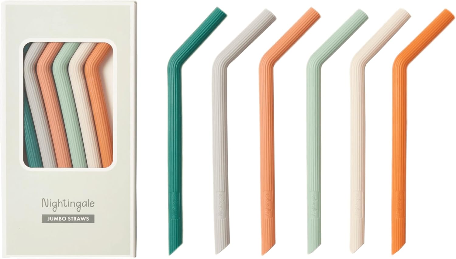 Nightingale Silicone Smoothie Straws - Flexible, Reusable Wide Drinking Straw with Cleaning Brush -Compatible w/Stanley 30oz - Bendy Boba Straws- Food-Safe, No BPA, Dishwasher Safe - Set of 6