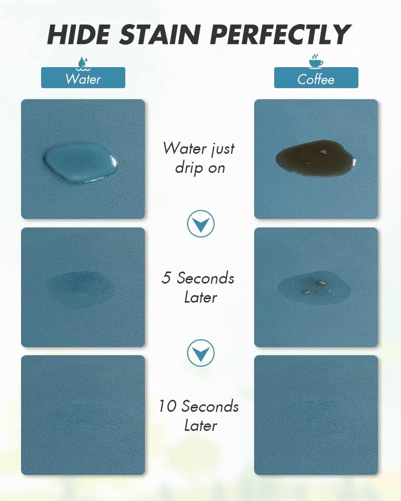 - NO WATER MARKS: 0.2" thick special PU surface hide coffee stains, milk stains and any other dark messy stains well. Say goodbye to traditional coffee mat full of stains