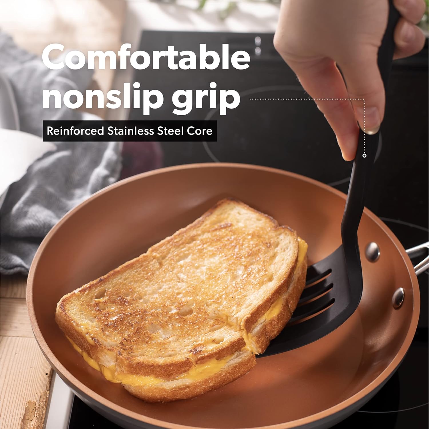 - VERSATILITY IN YOUR HAND – Embrace the freedom to sculpt flavors with turner spatulas designed to conform, conquer, and craft. Whether delicately flipping pancakes or boldly searing steaks, each spatula is an extension of your culinary mastery. The ergonomically designed, velvety smooth handle provides the control to orchestrate your culinary creations with finesse