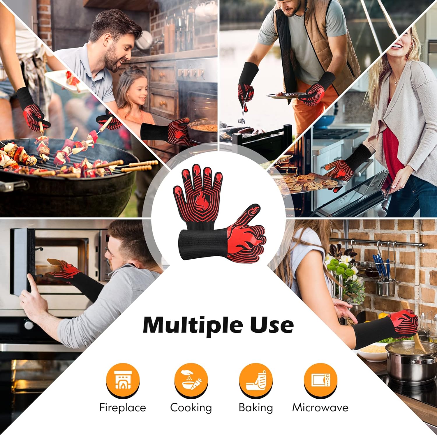 - 🔥【Multi-Function & Affordable】Our high temp cooking gloves are Multi-Function, which are perfect for all grilling occasions, fireplace, cooking, baking, microwave, etc. And these grilling gloves are affortable. In the pack, you will get a pair of heat-resistant cooking gloves and 50 pcs of disposable gloves as food safe gloves at restaurants or parties,which are ideal grilling accessories for men or women.