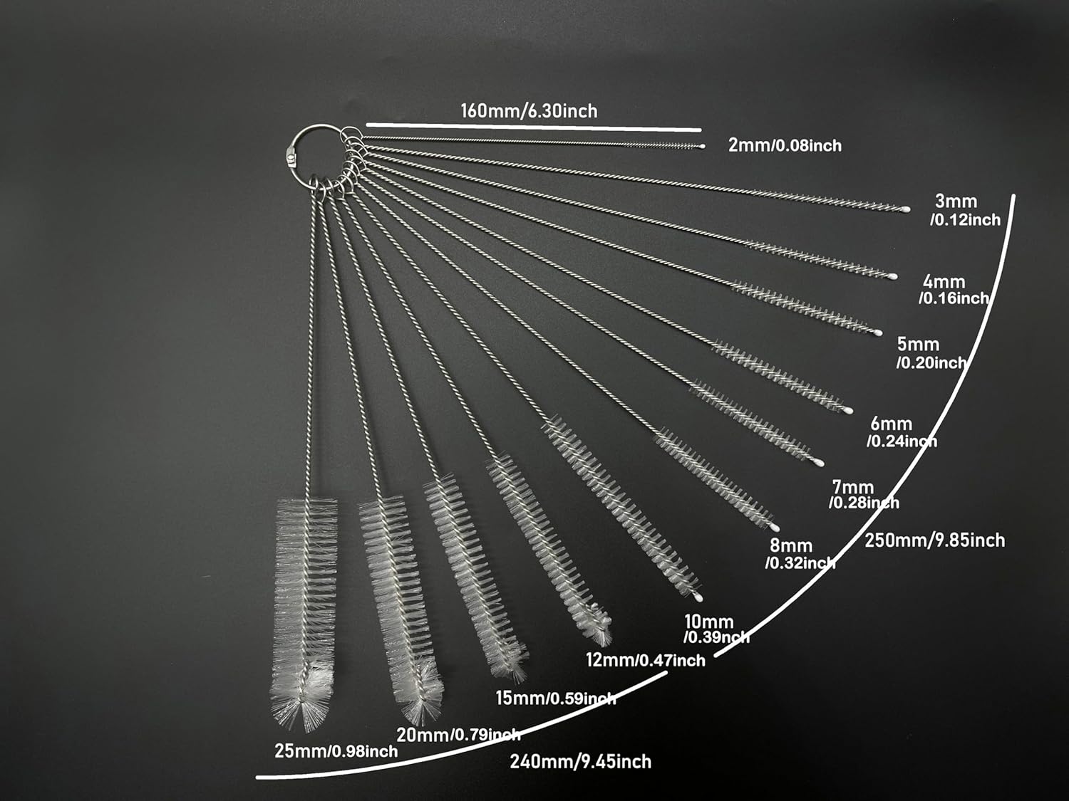 - MULTIPLE SIZE - This set of 12 straw brushes with diameter of 2 mm-25 mm, and the nylon bristle lengths of extra long size: 6.5 inches, 9.5 inches and 10 inches . Great for clean your reusabel stainless straws and silicone straw on Tumbler, Sippy Cup, water Bottles with straw, Tervis, CamelBak, Hydroflasks, Yeti, Starbucks Cup and others.