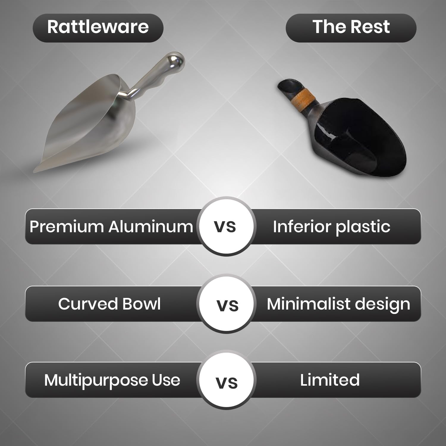 Rattleware 5 oz Aluminum Scoop β Multifunctional, Lightweight Measuring and Pouring Tool for Coffee Beans, Flour, Sugar, Ice, Pet Food, Candy & More β Durable & Versatile Kitchen Accessory