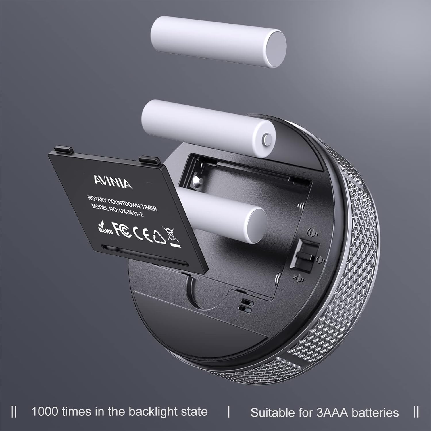 - 【 Energy saving & 365 days Guarantee】:Powered by 3 AAA batteries; if timer doesn't run and without any operation, display brightness will turn dim then light off in a few seconds. Don't worry it will not consume energy in the sleep mode. Each AVINIA TIMER has a full-year quality guarantee and detailed instructions manual, please rest assured to order.
