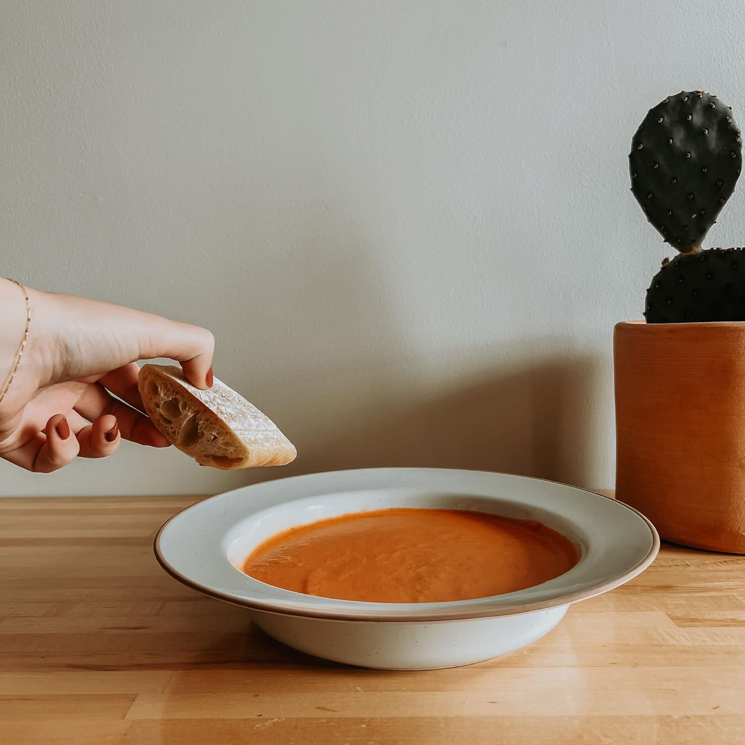 Mora Ceramic Wide Rimmed Soup Bowl 25oz, Set of 4 - For Pasta, Italian, Spaghetti, Dipping Bread, Fancy Dinner etc. Large Plate/Bowls Hybrid For Everyday & Restaurant Use, Large Flat Rim - Earl Grey