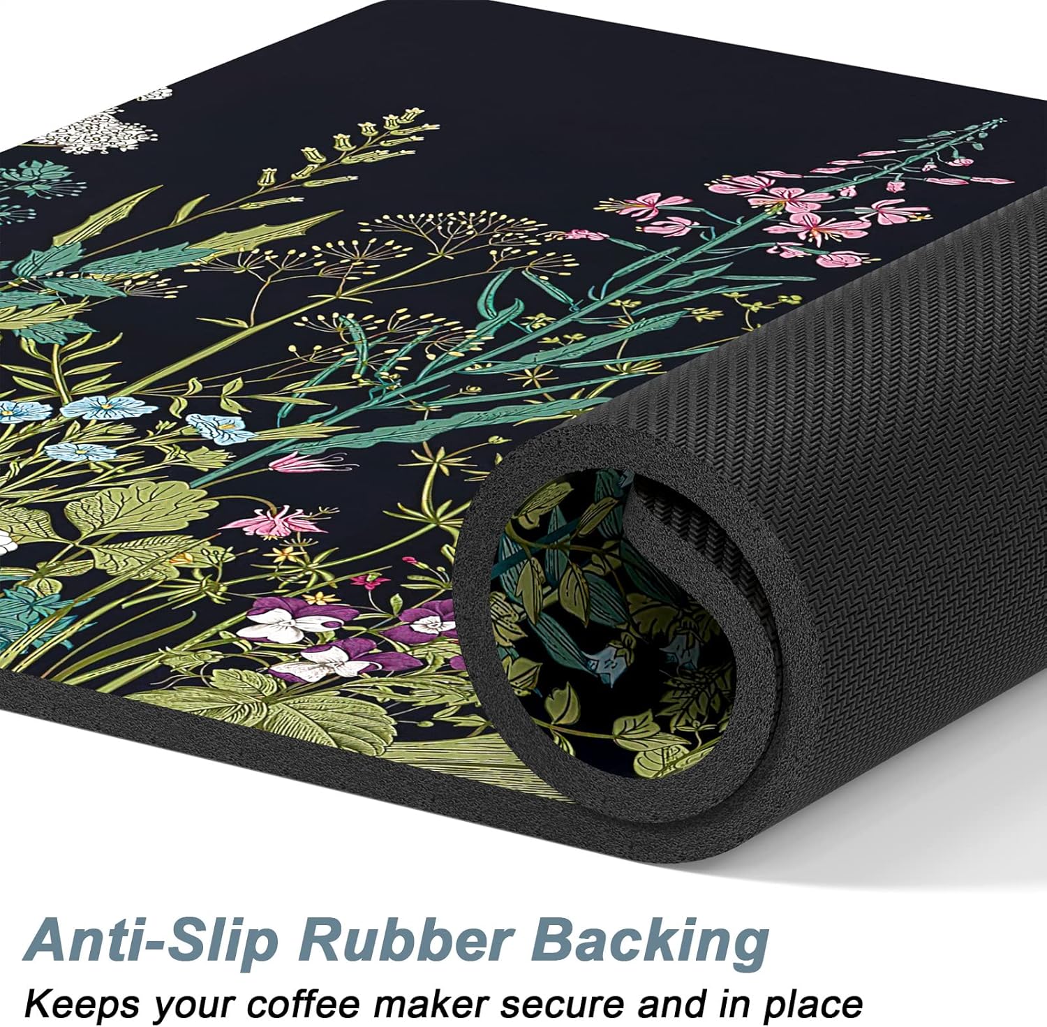- Super Absorbent and Non-slip: Coffee bar decor mat is crafted from absorbent suede and anti-slip rubber. The surface is soft, heat-proofand and can quickly absorb liquid. The anti-slip rubber backing can firmly grip the floor without unwanted sliding