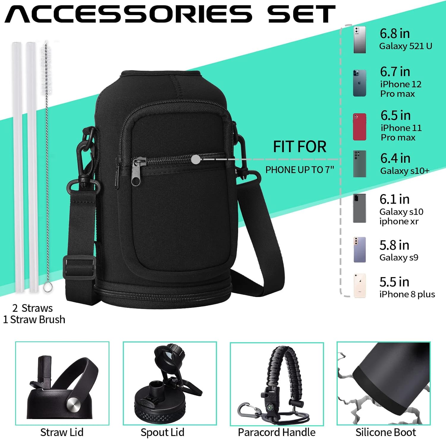 - SUPER JOYFUL COMBO: Buy a 64 oz insulated water bottle, get 9 accessories (2 x lids, 1 x survival paracord, 1 x carrying pouch, 1 x shoulder strap, 1 x protective cup mat, 2 x straws, 1 x straw brush). DIGJUPER provide a lifetime warranty and 7X24H customer service.