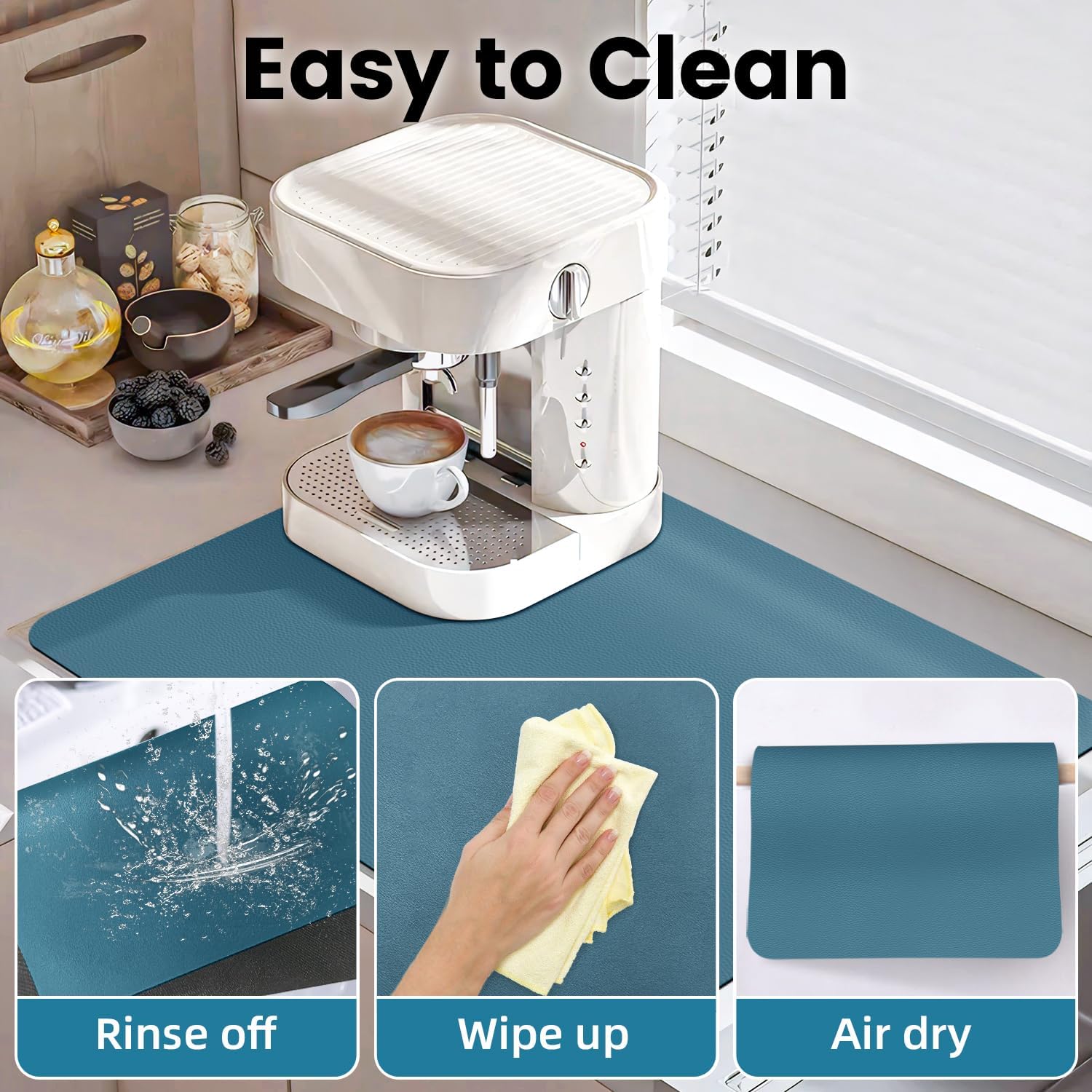 PoYang 24"x16" Coffee Mat Large, Coffee Bar Accessories for Countertop, Absorbent Dish Drying Mat, Anti-Slip and Hide Stain Pad for Espresso Machine, Espresso Maker and Kitchen Counter, Blue
