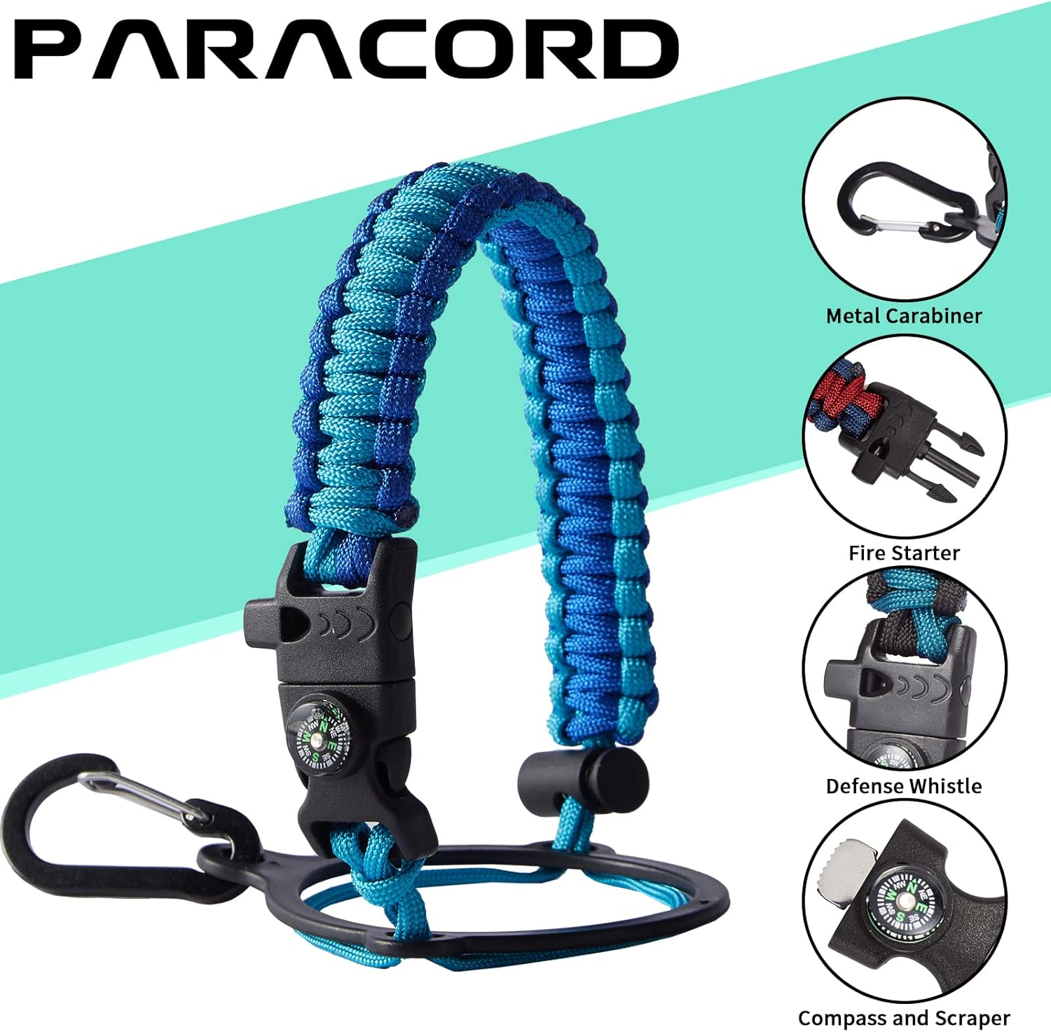 - UNIQUE PARACORD HANDLE: Bright color paracord matches the flask water bottle to give you a youthful vibe while adding a personal style. With a compass, safety loop, metal carabiner, flint, igniter and whistle to become your survival tool, making the 32 oz stainless steel water bottle with paracord an ideal survival kit for expeditions in the wild