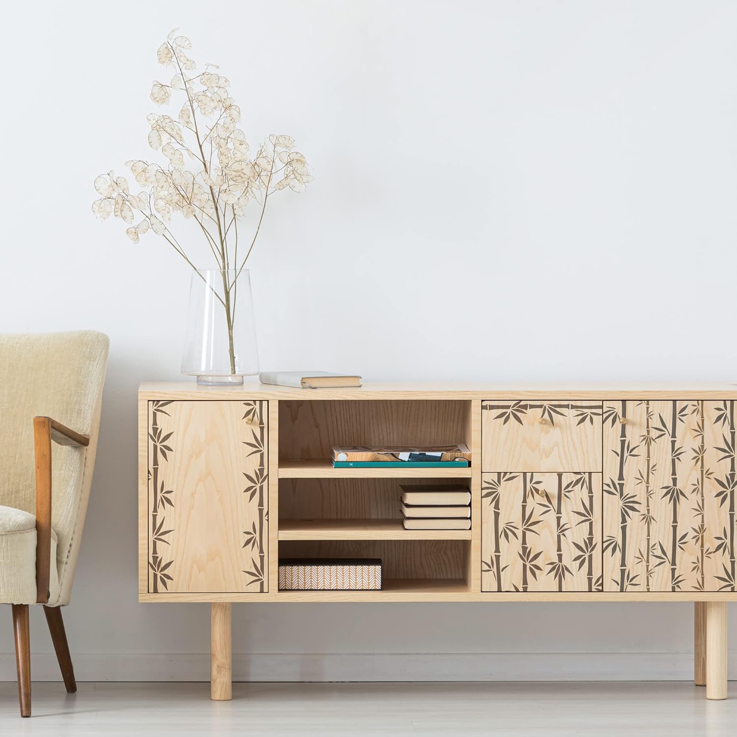 NAKLEO Painting Stencil for Crafts A3 11.8” x 16.5”, Bamboo Shoots Tropical Oriental Pattern, Reusable Plastic DIY & Scrapbooking Drawing Template, Decoupage Art Home Decor, Wall Wood Fabric Furniture