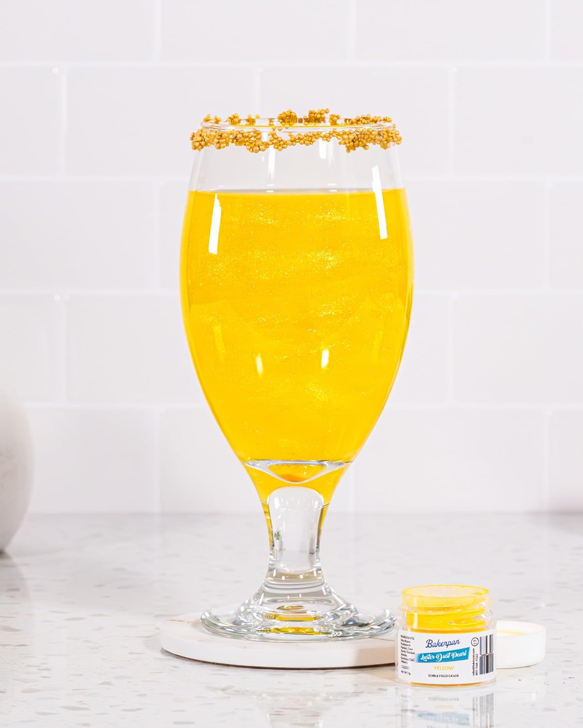 Bakerpan Pearl Luster Dust Edible, Yellow Edible Glitter for Cocktails, 4 Grams Edible Glitter for Cake Decorating, Cookies, Chocolates and Candies, Drinks (Made in USA)