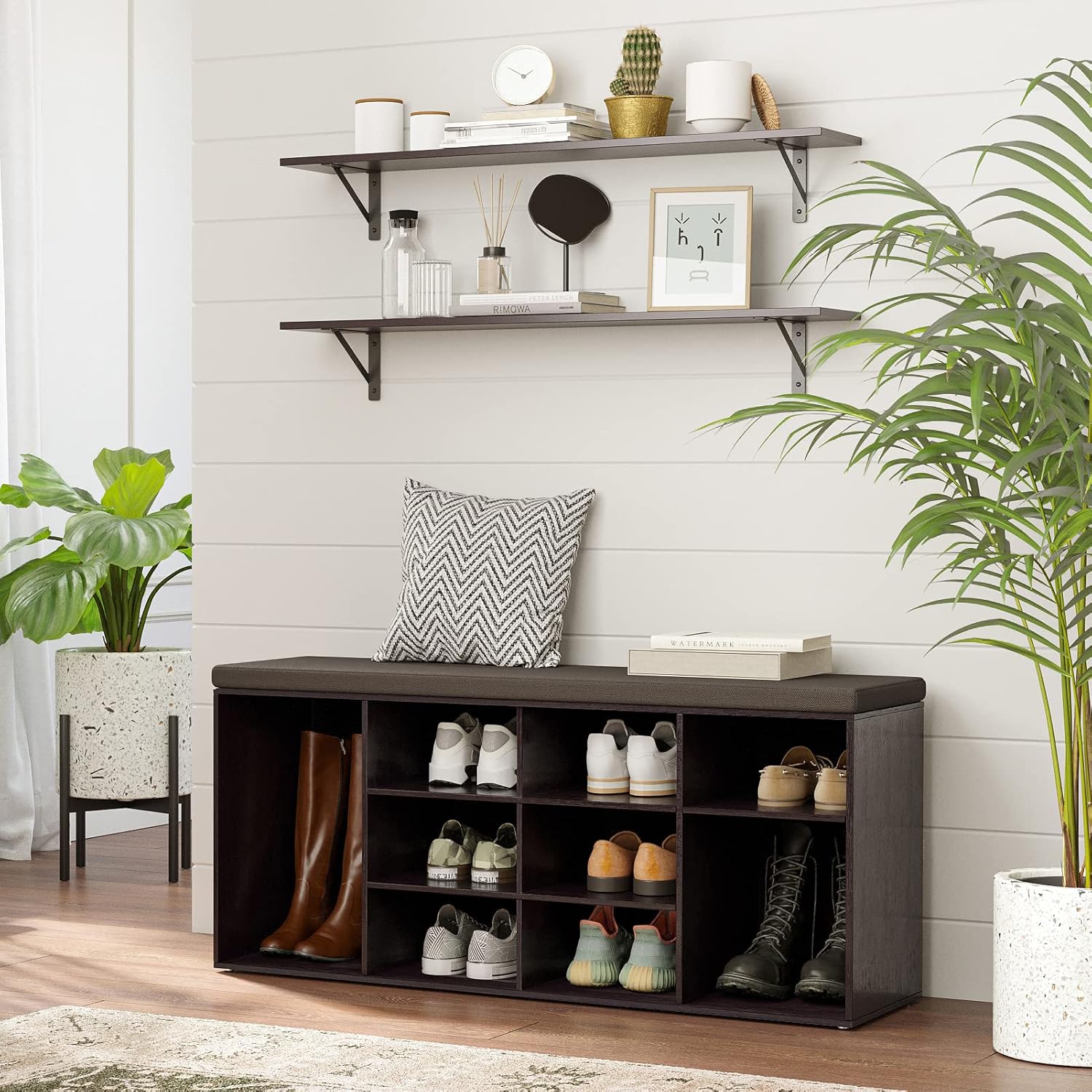 - ăFit for All RoomsăThe shelves for wall storage is gospel of small family to enjoy the tranquility of home. The large shelves allow you to store books, games, decorations, plants, towels, photos, etc. Building extra storage in living room, bathroom, bedroom, closet, balcony, study, kitchen, laundry, bar area, pantry and office