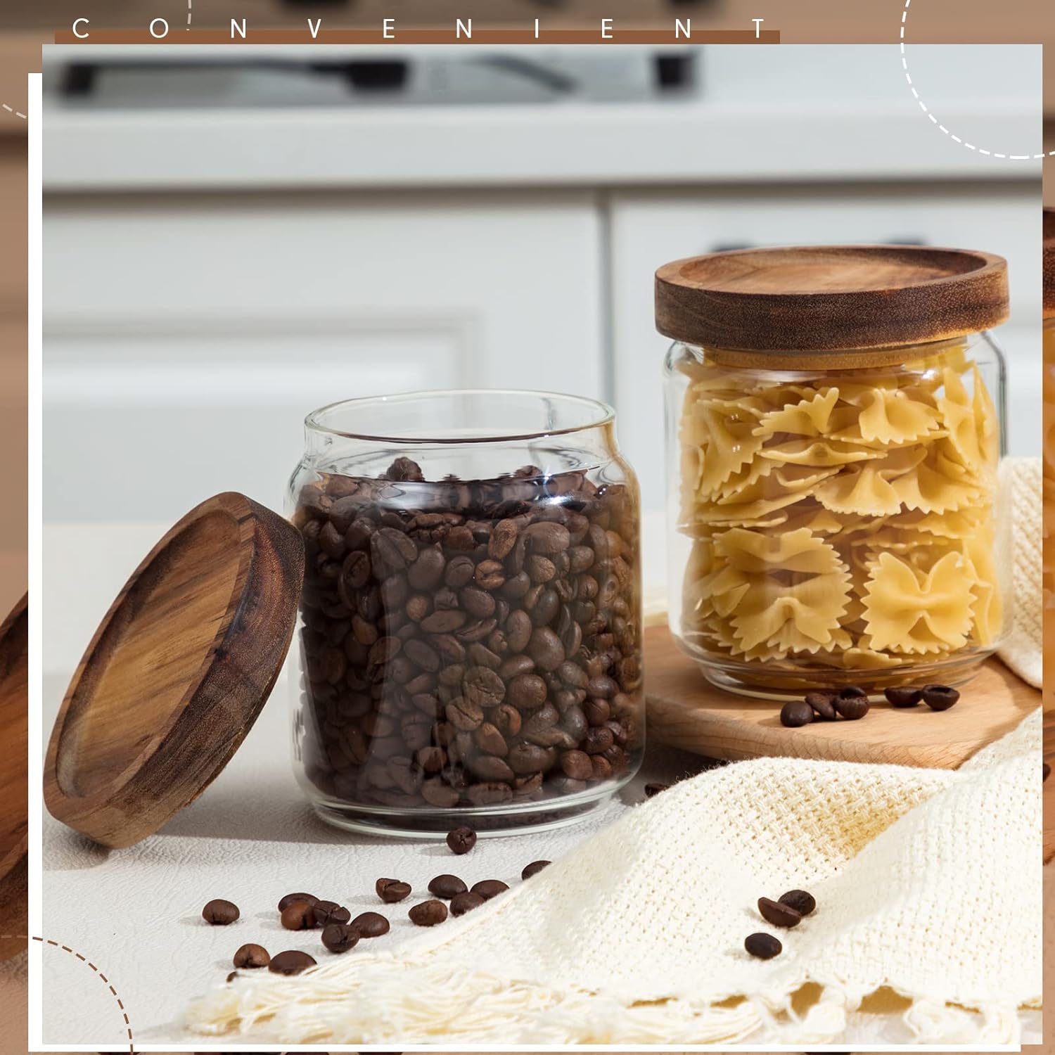 - Wide Range of Uses: our storage jars with lids are ideal for the kitchen, widely applicable to store coffee beans, tea, seasoning, oats, weeds, snack and others; Further, the delicate look is also good for holding candies, cookies, nuts to decorate your space