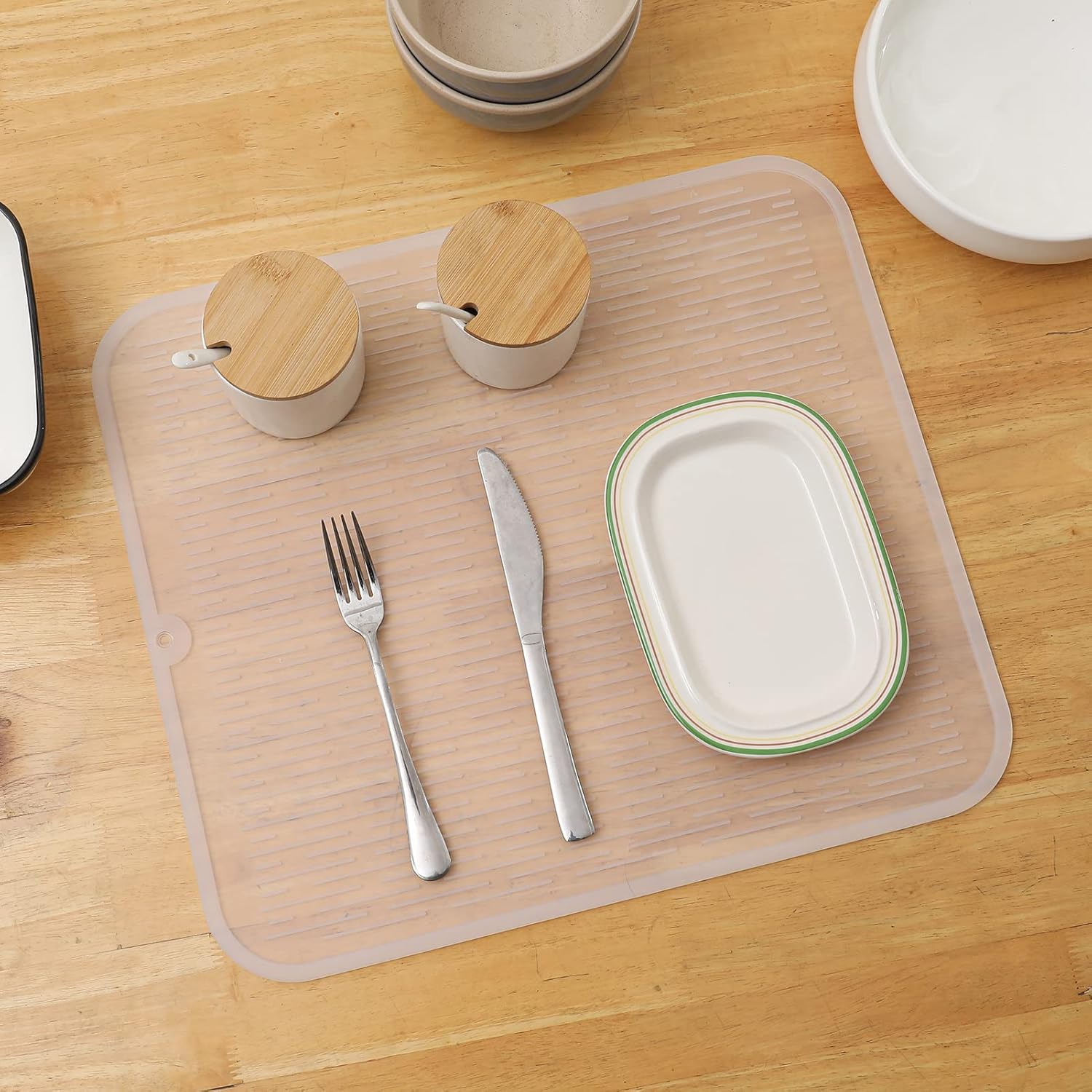 Silicone Dish Drying Mat for Multiple Usage,Easy clean,Eco-friendly,Heat-resistant Silicone Mat for Kitchen Counter or Sink,Refrigerator or Drawer Liner Translucent 2XL 24 inches x 18 inches