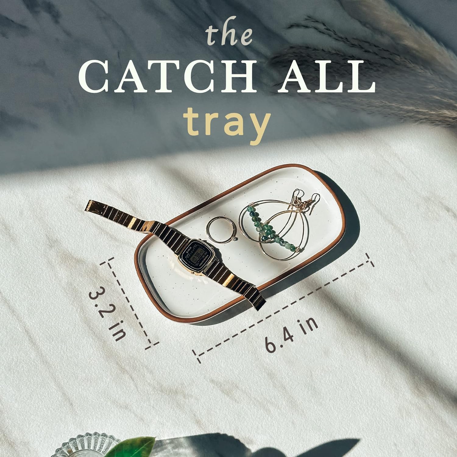 - VERSATILE USES: We all love a multi-functional object. Trays are all the rage right now and with good reason. Storing things on a tray gives a minimal and organized aesthetic and can be used for an endless amount of things. Your stationary, soap dispensers, brushes, candles, cosmetics, jewelry etc all deserve a beautiful home. The glaze is also food grade and work great for serving cheese, sushi, mini cakes, etc.