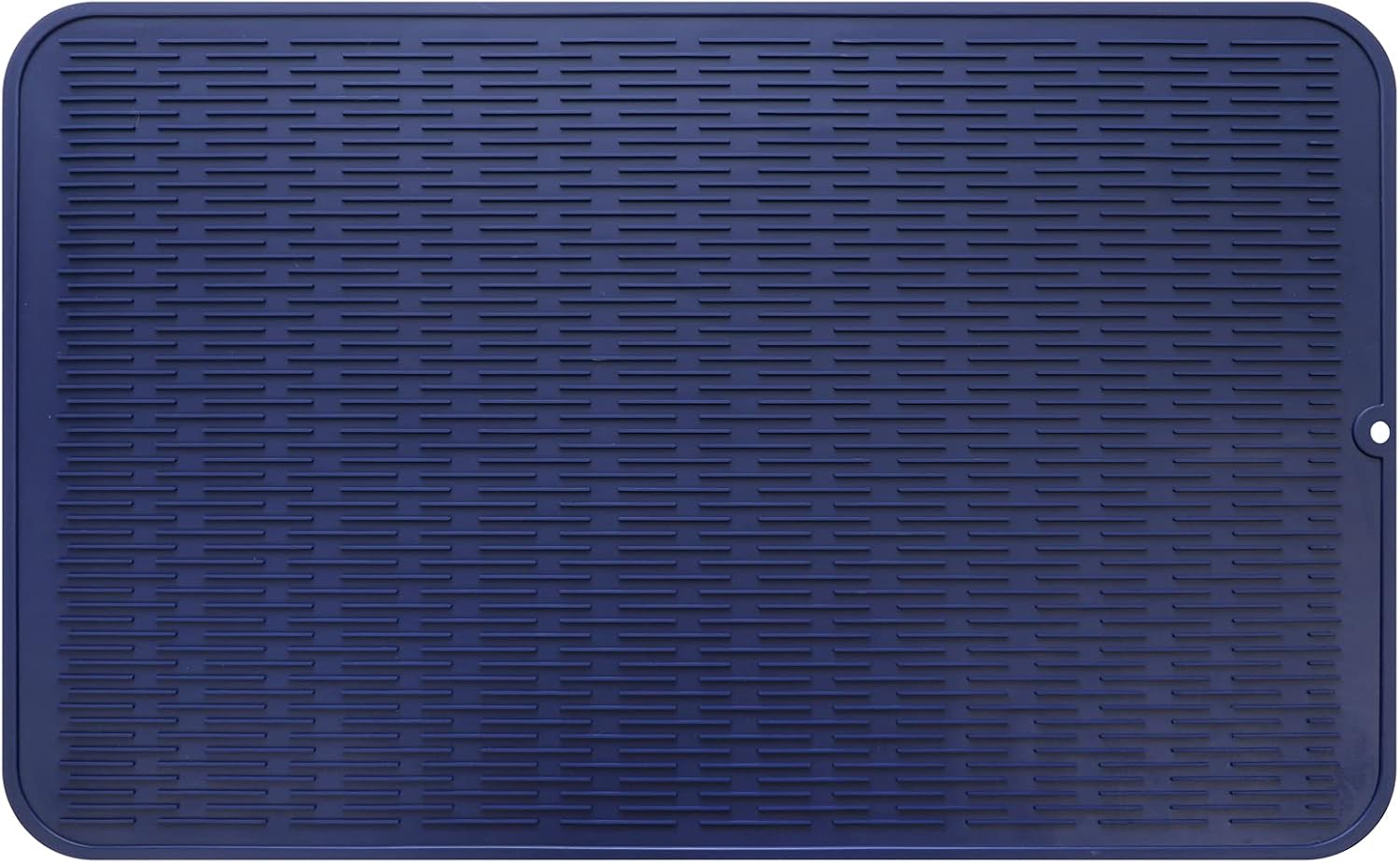 Silicone Dish Drying Mat for Multiple Usage,Easy clean,Eco-friendly,Heat-resistant Silicone Mat for Kitchen Counter or Sink,Refrigerator or Drawer Liner Navy Blue 3XL 28 inches x 18 inches