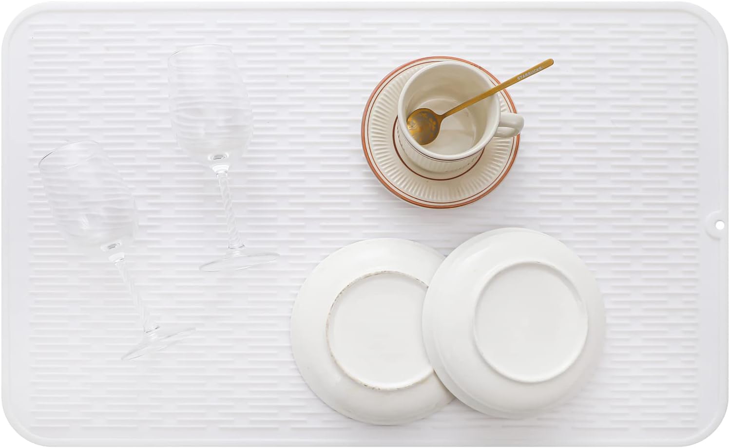 Silicone Dish Drying Mat for Multiple Usage,Easy clean,Eco-friendly,Heat-resistant Silicone Mat for Kitchen Counter or Sink,Refrigerator or Drawer Liner White 3XL 28 inches x 18 inches