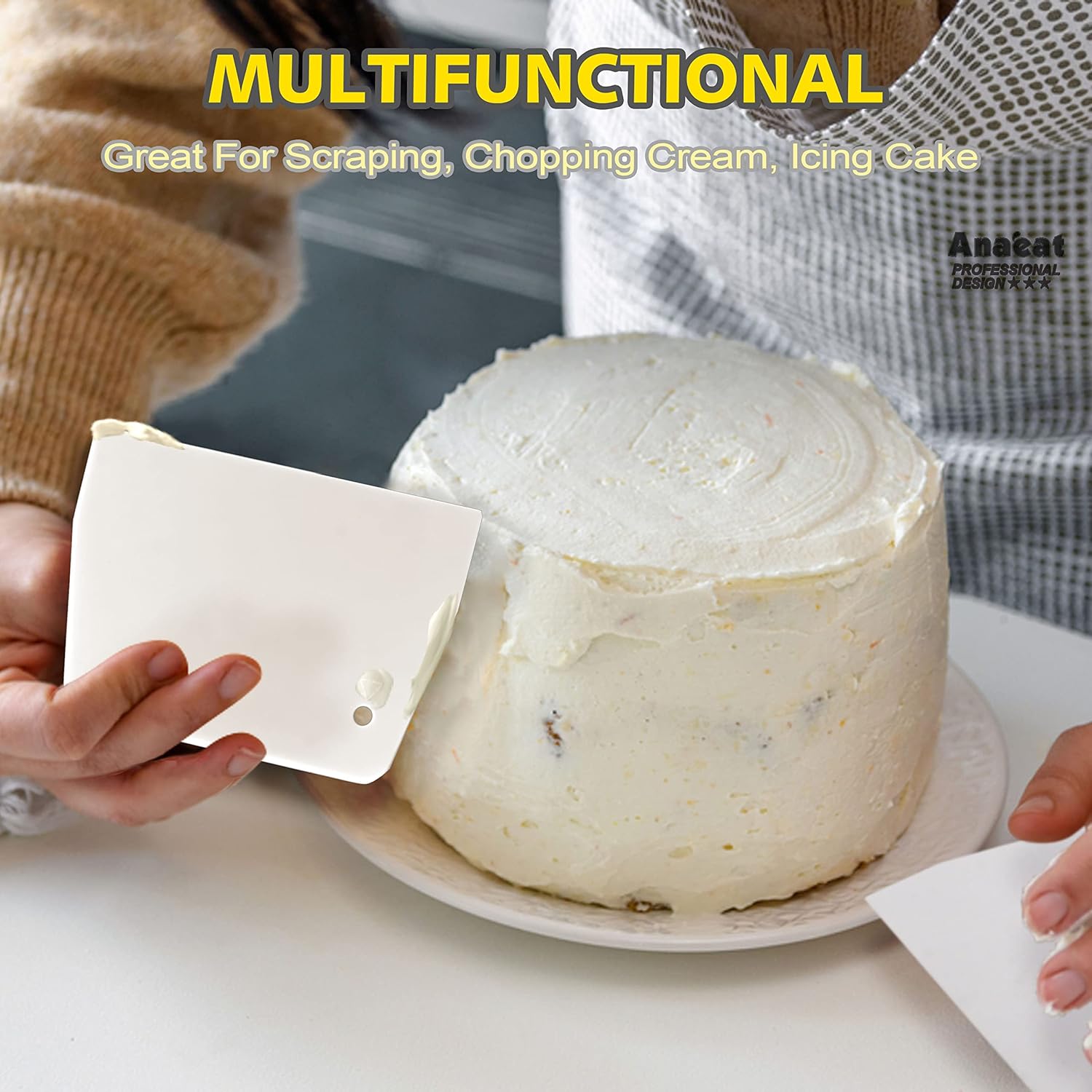 - CAKE SMOOTHER & SCRAPER - Essential baking tools that help achieve perfectly mixed batter and a smooth, professional-looking cake surface. Versatile and easy to use, they are must-have items for baking enthusiasts and professionals alike. The scraper ensures all ingredients are fully mixed, while the smoother creates a smooth surface for frosting and decorating. These tools will make your creations look and taste even better.