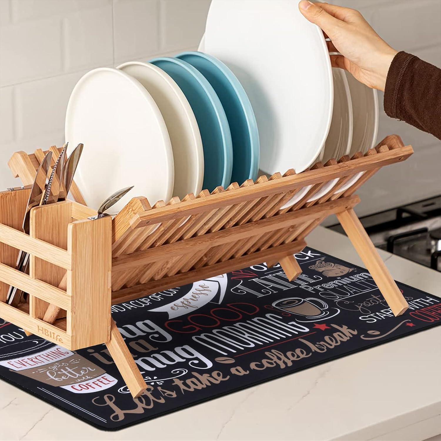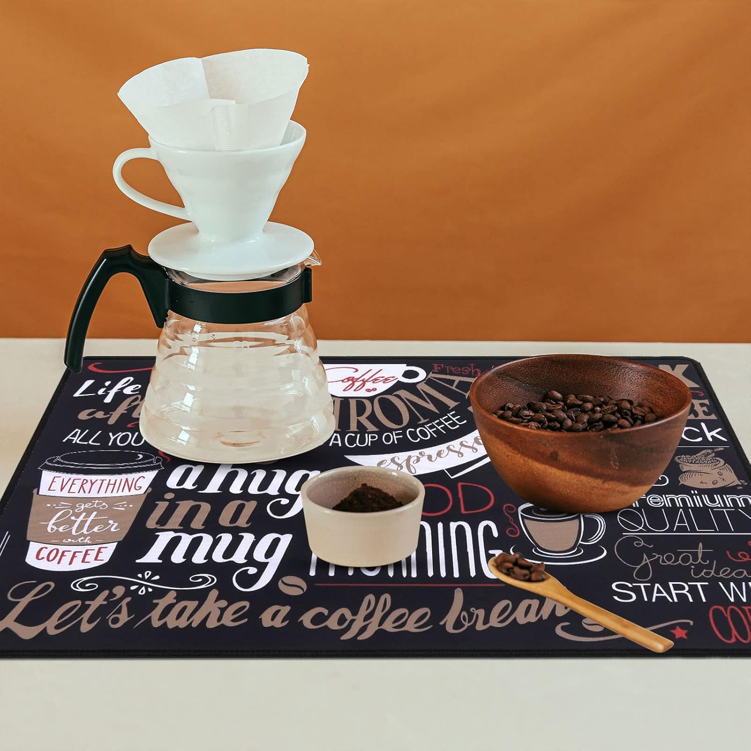 - Easy to clean: The coffee bar mats for countertop has no need to clean frequently. They can be cleaned with soap to remove stains, and then dried and reused. But do not bleach