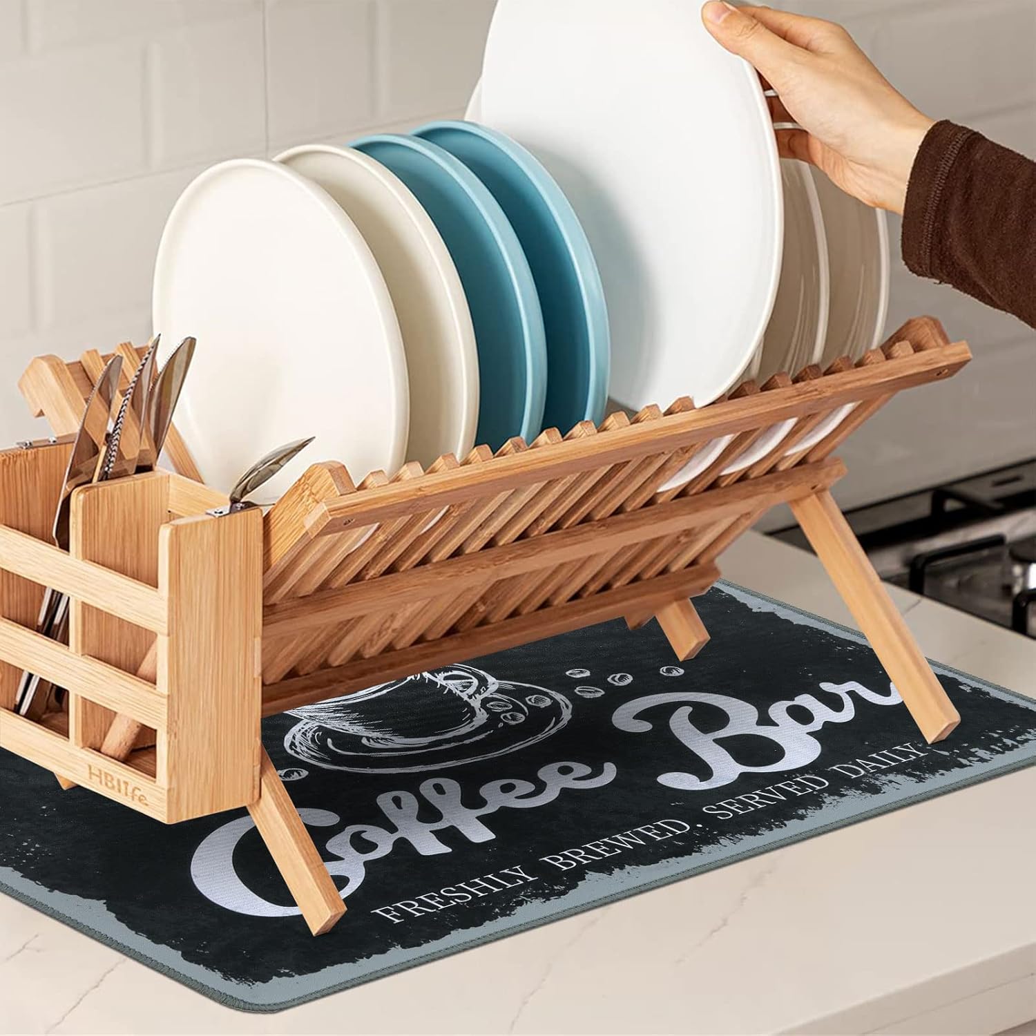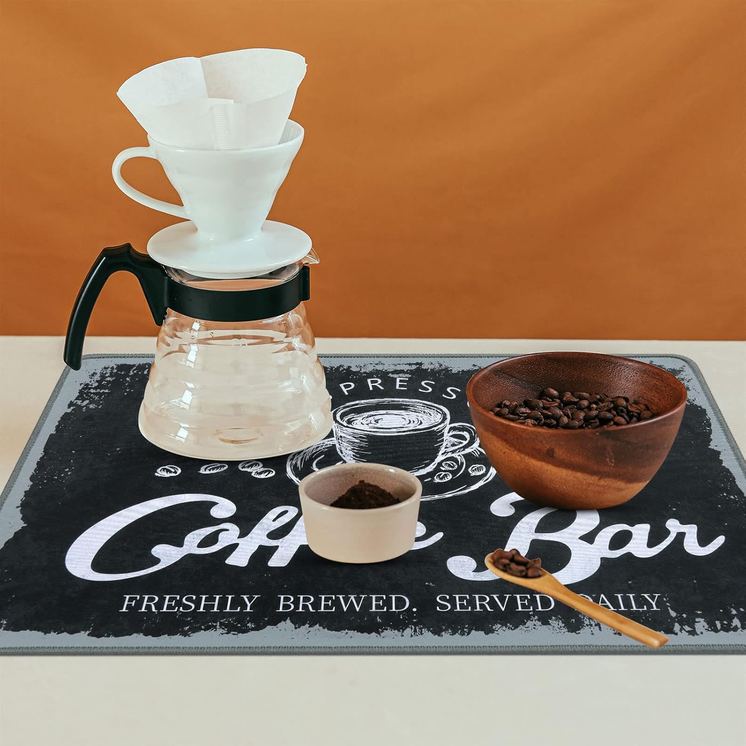 - Easy to clean: The coffee bar mats for countertop has no need to clean frequently. They can be cleaned with soap to remove stains, and then dried and reused. But do not bleach