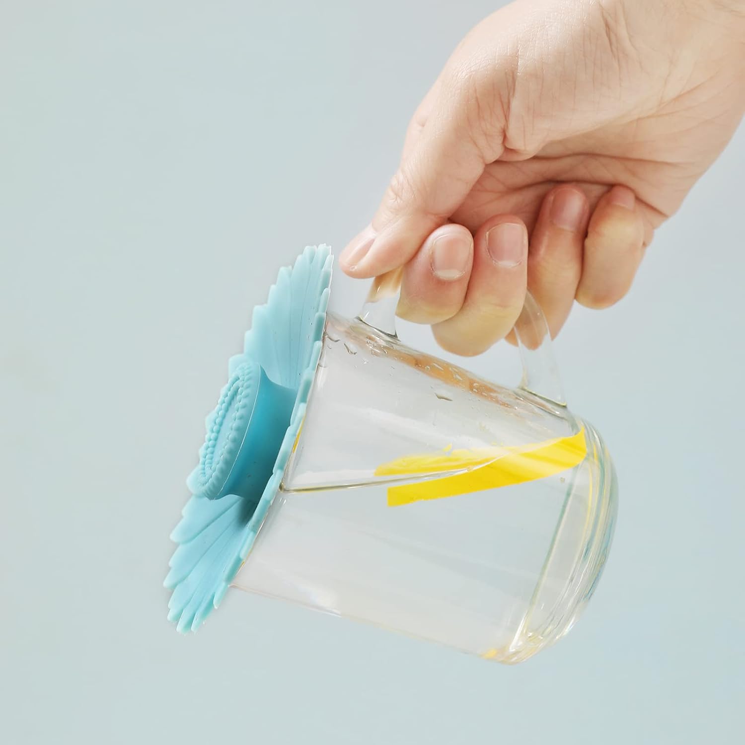Sunflower Silicone Cup Covers (Set of 3) , Multicolored Silicone Lids for Mugs, Cups, Tea Pots,Flexible Mug Covers,Hot Cup Lids for Coffee & Tea