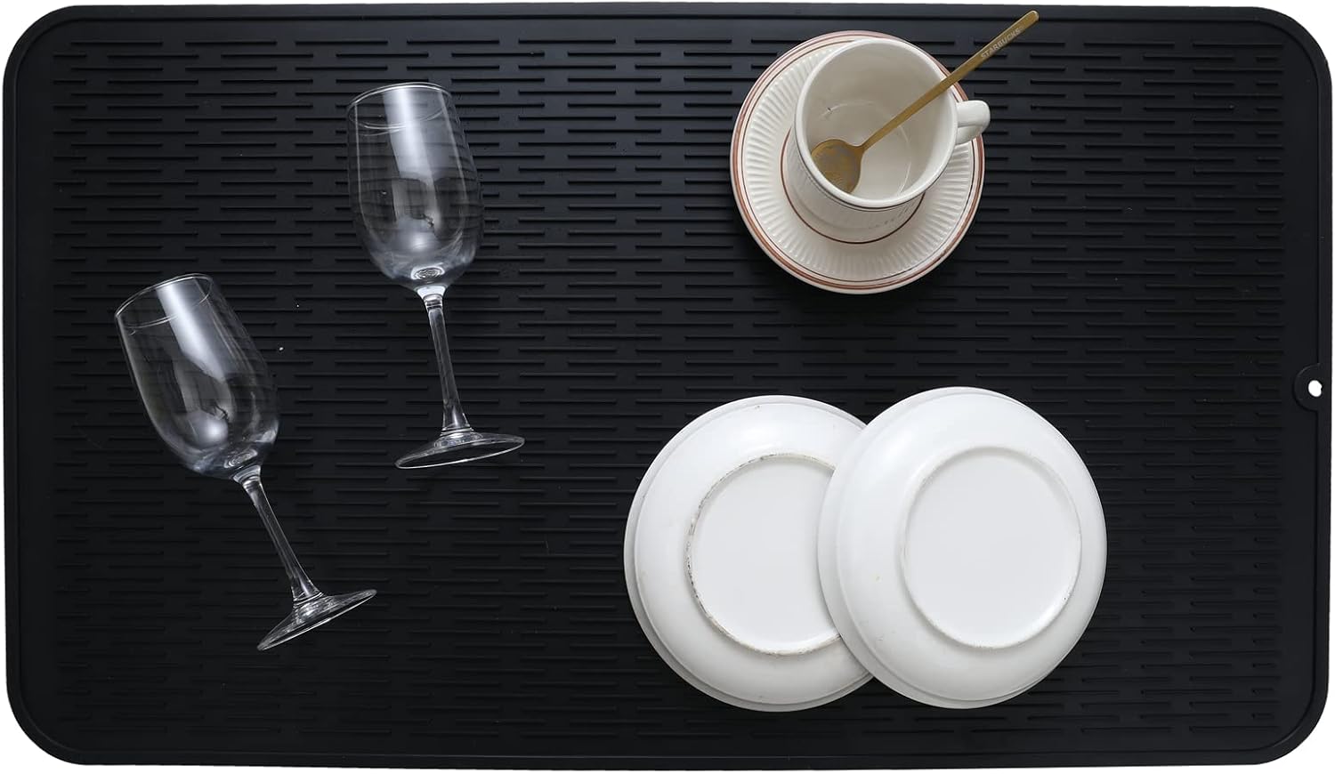 Silicone Dish Drying Mat for Multiple Usage,Easy clean,Eco-friendly,Heat-resistant Silicone Mat for Kitchen Counter or Sink,Refrigerator or Drawer Liner Black 4XL 32 inches x 18 inches