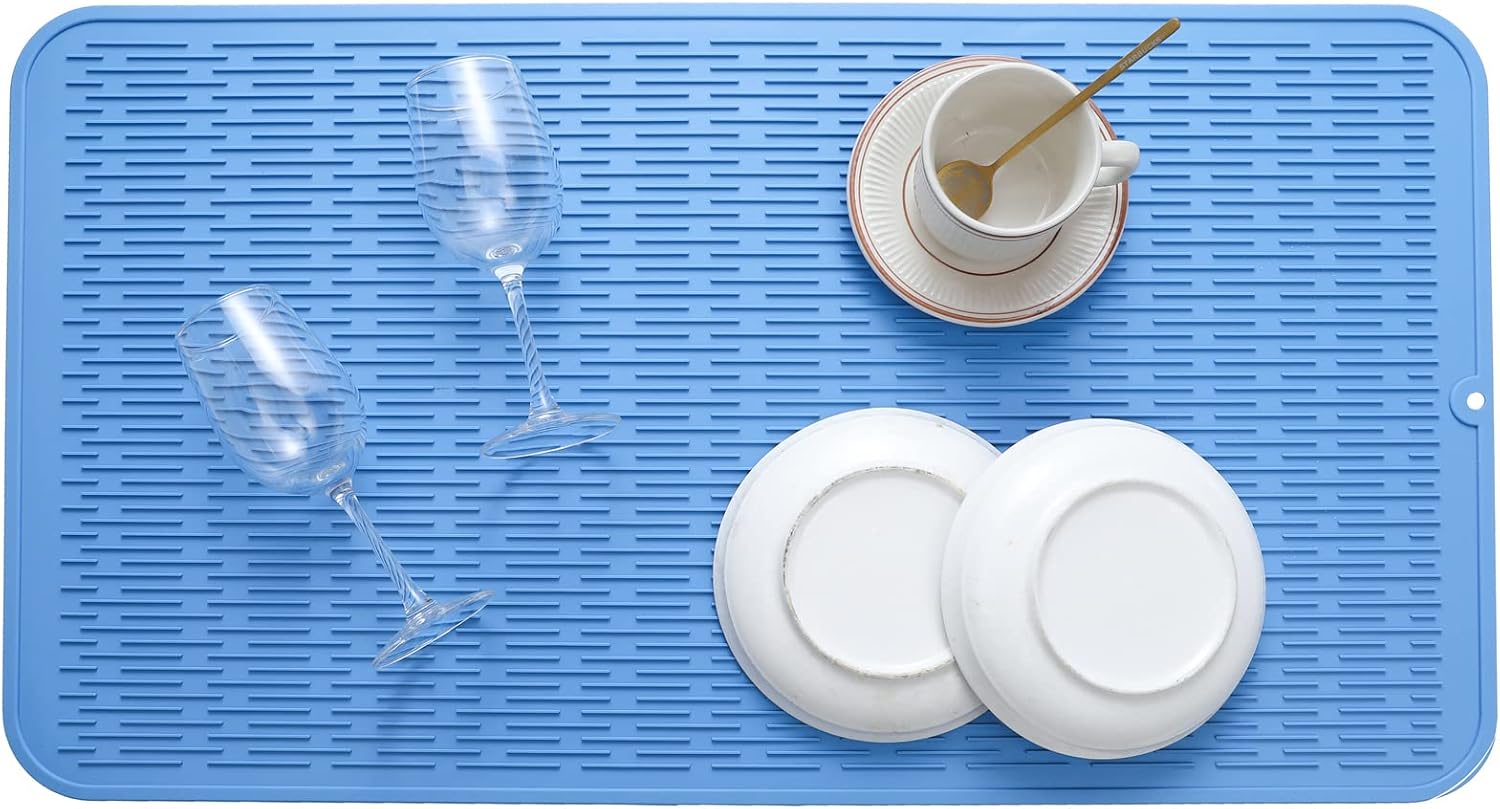 Silicone Dish Drying Mat for Multiple Usage,Easy clean,Eco-friendly,Heat-resistant Silicone Mat for Kitchen Counter or Sink,Refrigerator or Drawer Liner Lichen BlueL 4XL 32 inches x 18 inches
