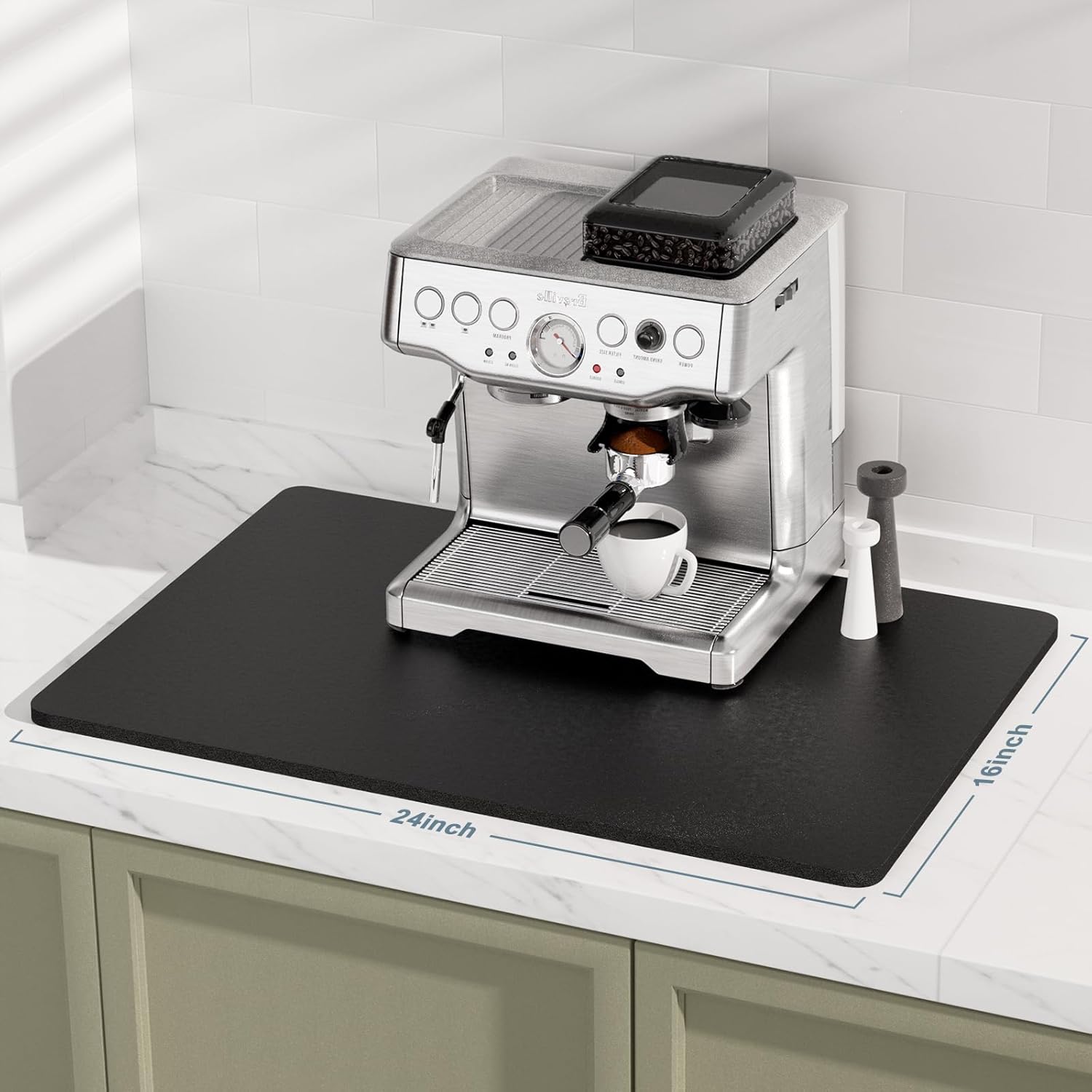 - Versatile Size: Coffee pad for espresso machine accessories measures 16" X 24" fits most counters. Thickened design 0.16 inch thick, which can also be used for any small home household appliances indoors